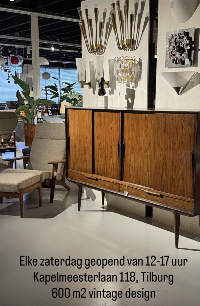 Nieuw binnen Groovy vloerkleed (2 dezelfde kleden op voorraad!)Elke zaterdag open 12-17 uur Kapelmeesterlaan 118 Tilburg noordSet van 2 buisframe fauteuiltjesVintage Lübke stoelSOLDSalontafel met rotanKeramieken ezeltjeHouten sculptuur van vogelKarlsruher Majolica schaaltjeCohr zout- en peperstelMessing kandelaar door TaniniVintage bureaulampItaliaanse glazen tafellampLouis Poulsen PH 4/3 tafellampKeramieken vloerlampLumina Daphine Terra vloerlampSOLDJaren 50 nachtkastjes60’s Teak plantenbakDyrlund klapstoelSOLDBoco Utrecht salontafelArtemide ‘Bacco’ tafeltjeSOLDCharles Pollock ‘Executive chair’ voor KnollEero Saarinen bijzettafel voor KnollZeer groot palissander dressoirMusterring teak kastje Bekijk meer