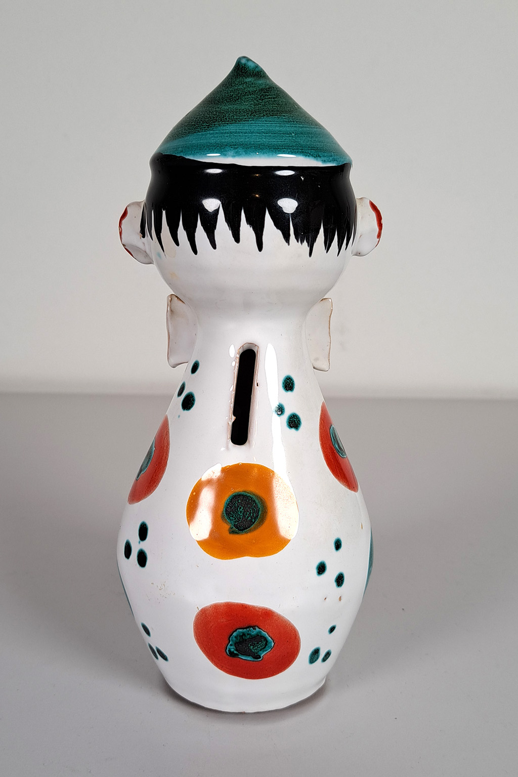 50’s Ceramic money-box from Italy. This sweet clown is still in good vintage condition except a little chip at his hat.