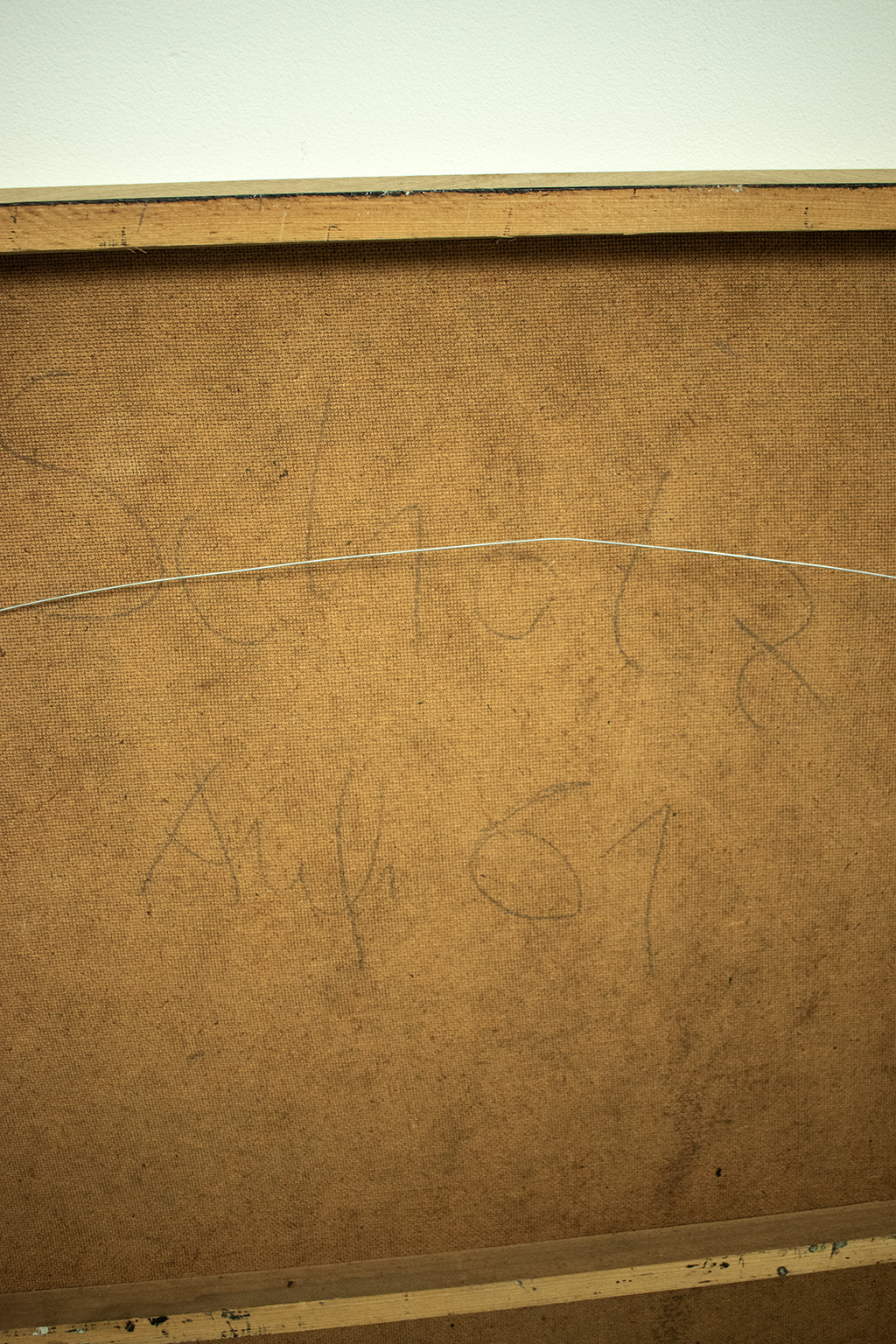 Abstract expressionistic painting by Scholz, a German artist. Painted on board and we added an oak frame. This work is part of a range of paintings which are also on our website. The colours is hard to photograph so we would advise to make an appointment to see for yourself. The painting is signed and dated 1961. Traces of use consistent with its age.