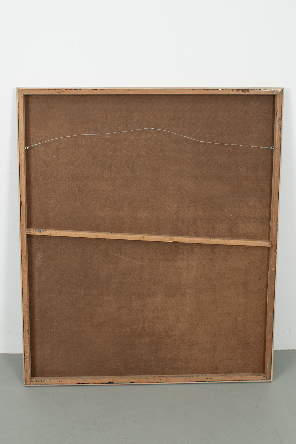 Abstract expressionistic painting signed Scholz, a German artist. Painted on board and we added a new oak frame. This work is part of a range of artwork of which we have multiple pieces. The colours are hard to photograph so we would advise to make an appointment to come and look for yourself. This work is signed and dated 1961. It has traces of use consistent with its age.