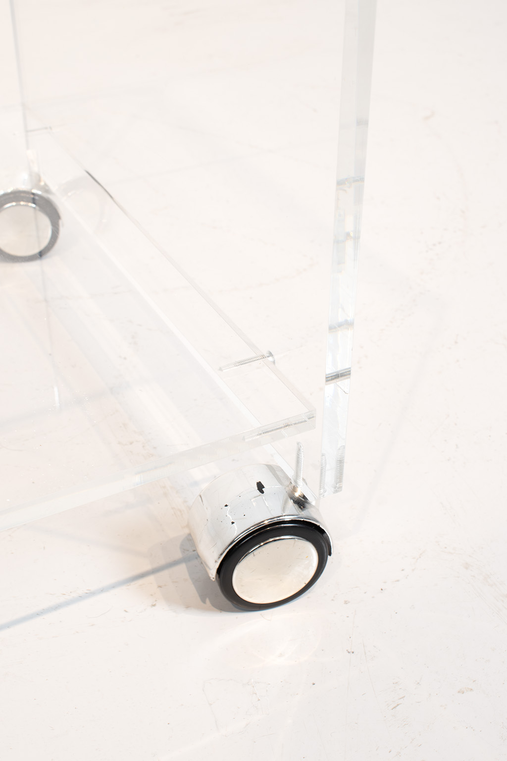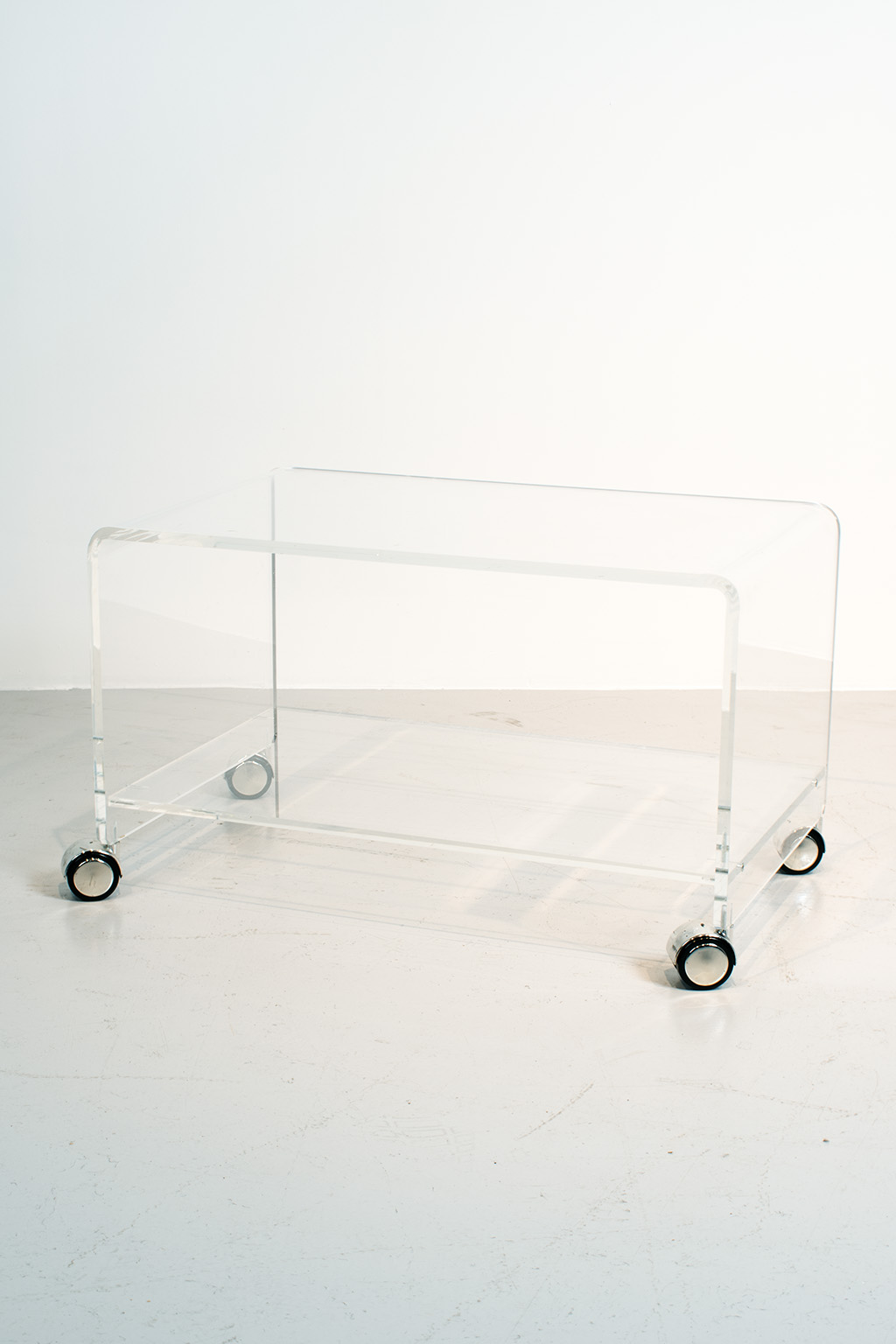Acrylic glass trolley or hifi cabinet. Easy to move since it has wheels. Usual traces of use like scratches on the perspex. Furthermore in good vintage condition.
