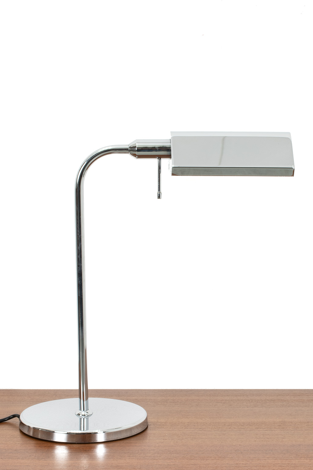 Chrome desk lamp from an old stock. A small dent on the base (see photo) but furthermore in a good vintage condition.