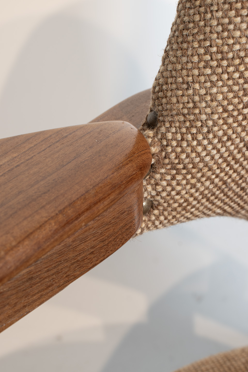 Louis van Teeffelen for Wébé lounge chair. This model from the 60’s is called ‘Pelikan’ or ‘Scissor’. A beautiful typical Mid Century design made of teak wood. The Dutch designer was inspired by Danish design but still has his own, recognizable signature. This piece hasn’t been restored and has some slight damage on the frame which partially can be recovered. The fabric is original and in good condition as well as the foam underneath.
