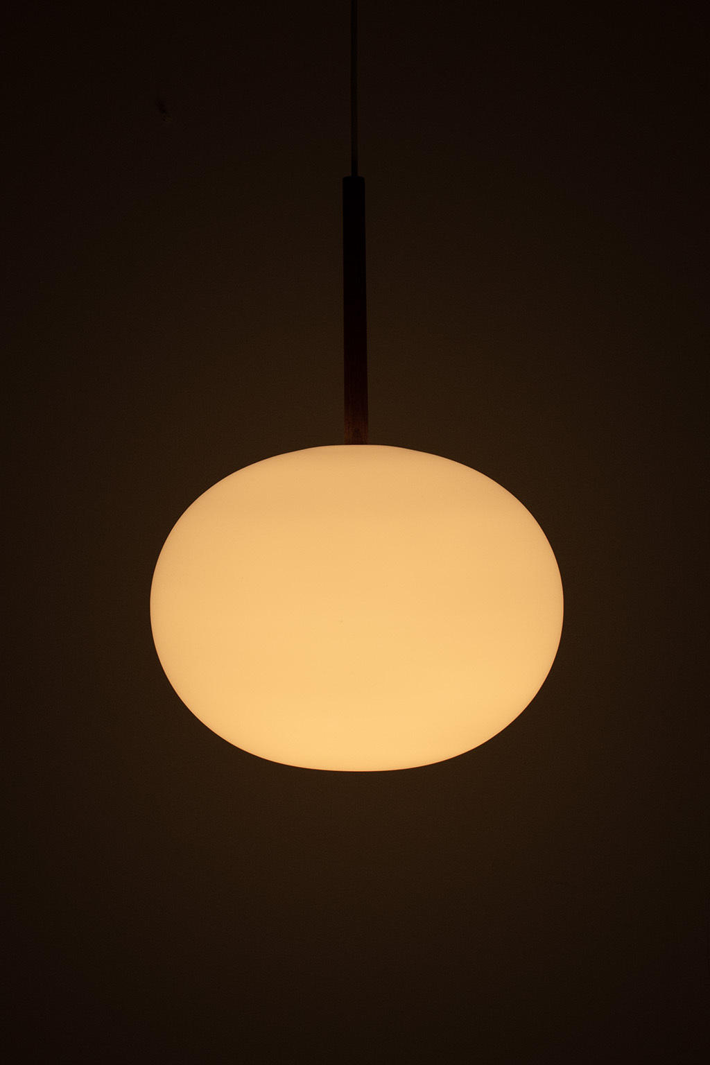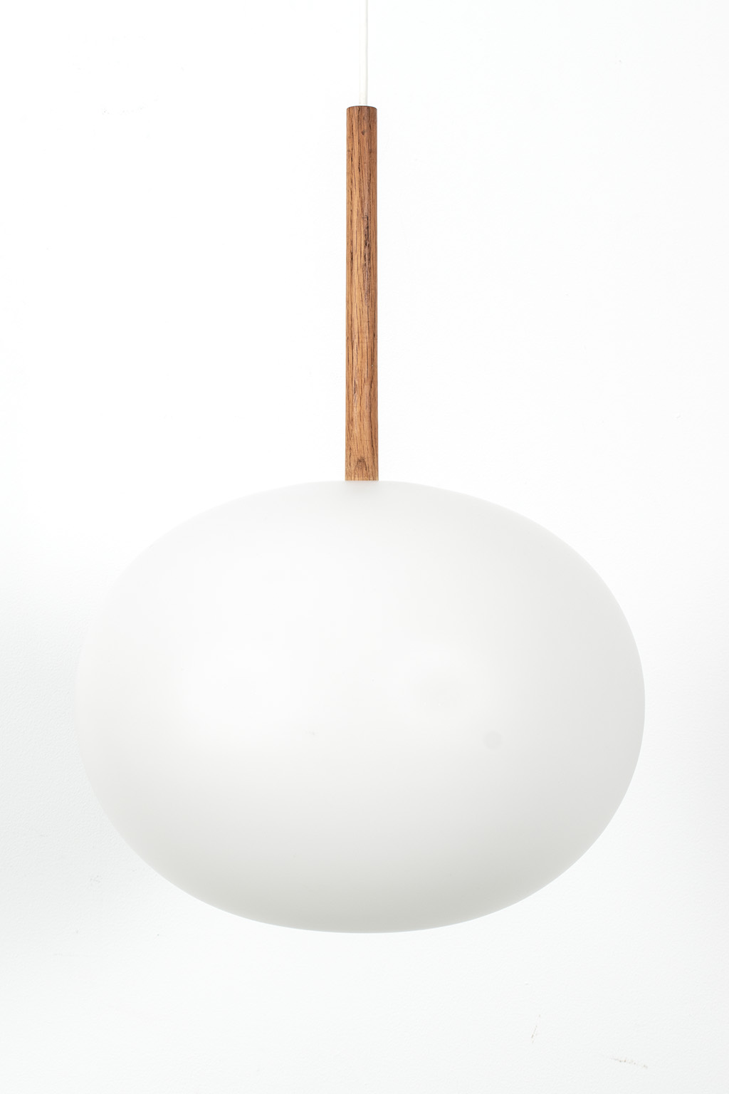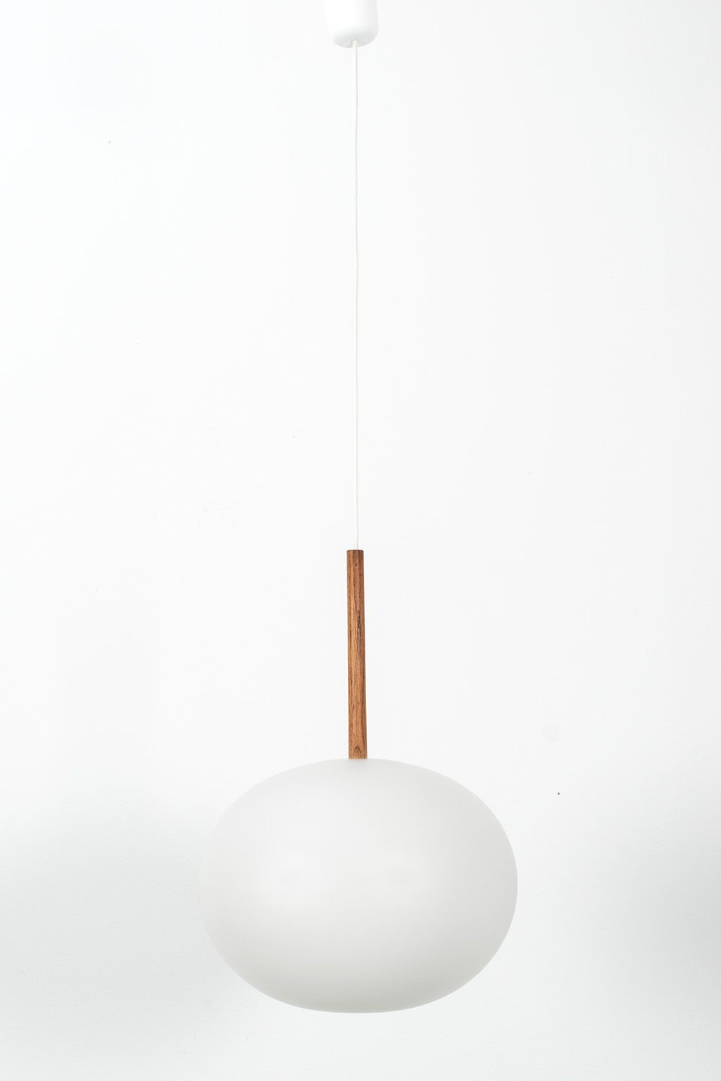 Luxus hanging lamp model 552 designed by Uno & Östen Kristiansson. This apparently simple lamp made from frosted glass is of great Class with a capital C because of the subtle shape and use of beautiful materials.