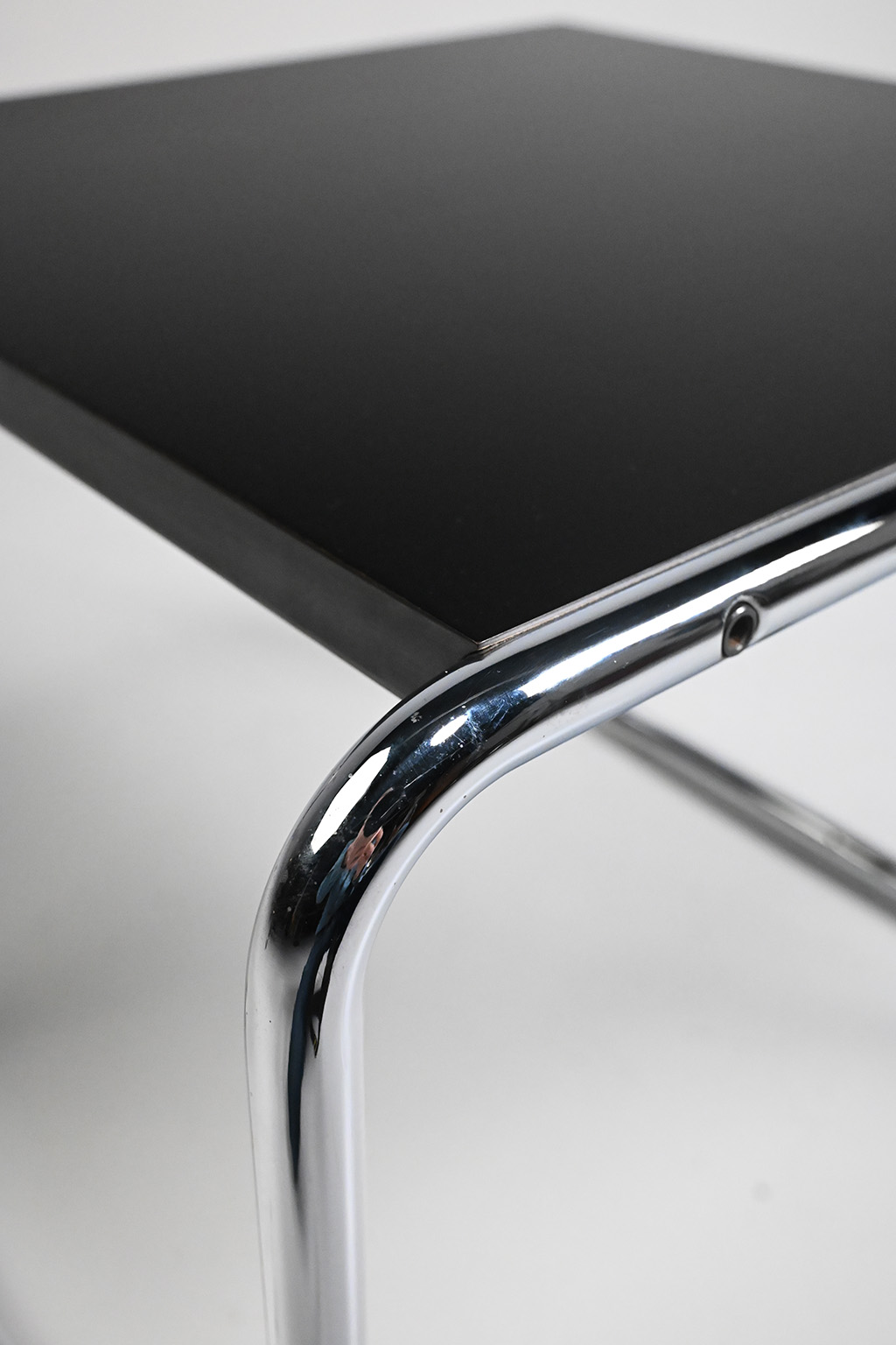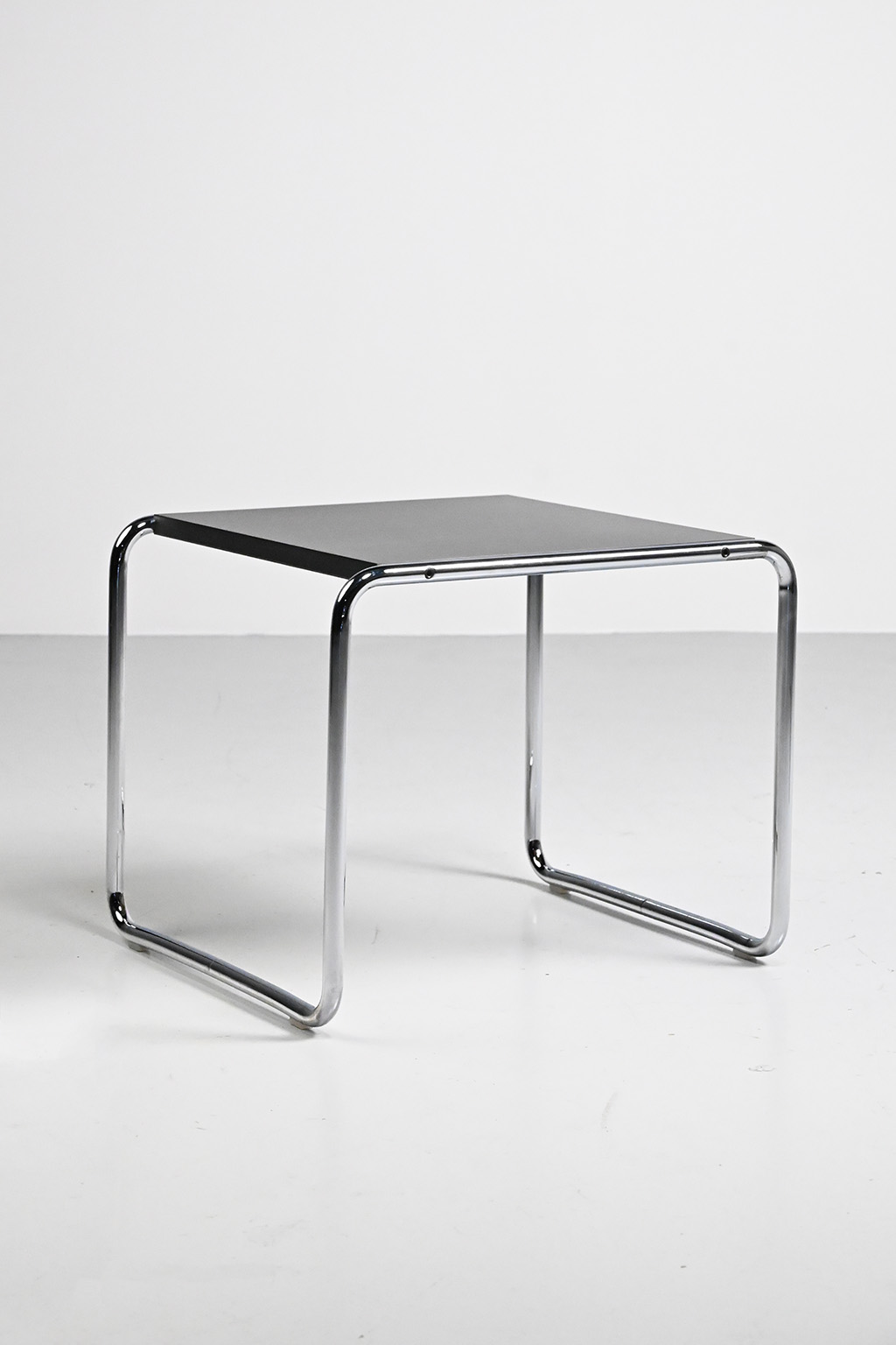 Marcel Breuer side table for Knoll Studio. Breuer designed this Bauhaus design classic in 1925. This Laccio table is marked and has a chromed frame and a laminated table top.