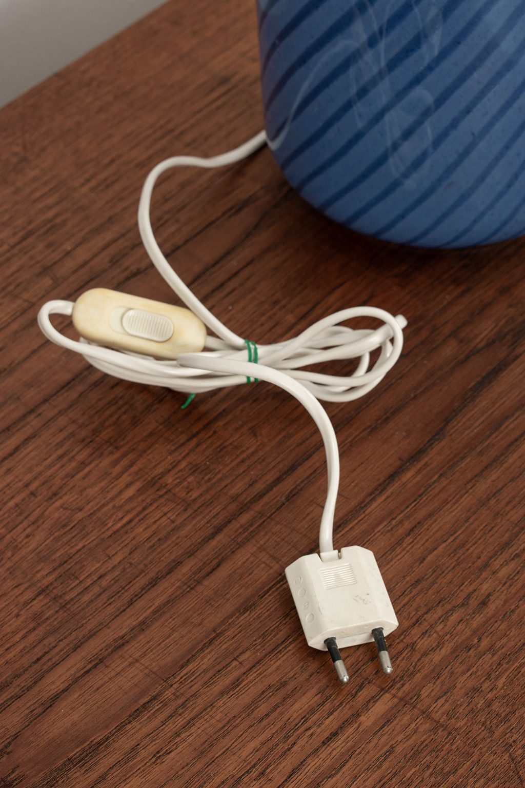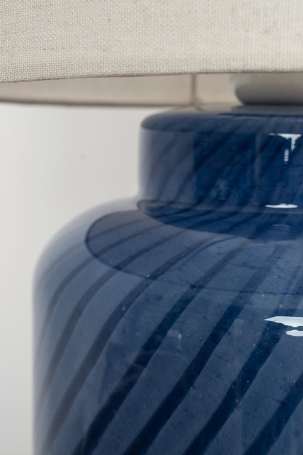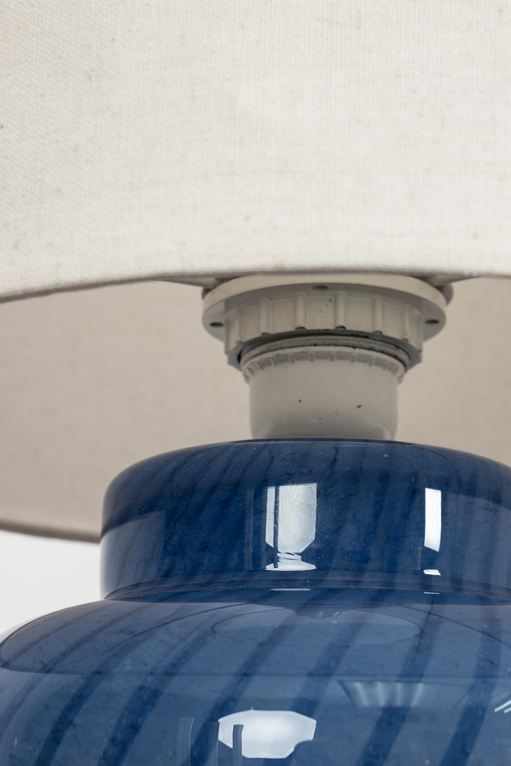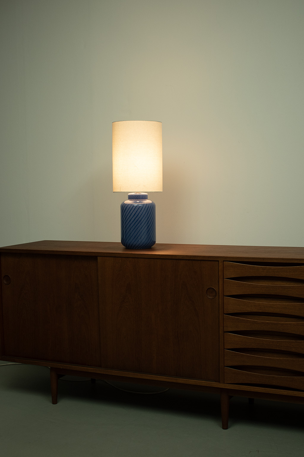 Murano table lamp with shade. The Murano glass has beautiful blue stripes. The lamp is including the shade.