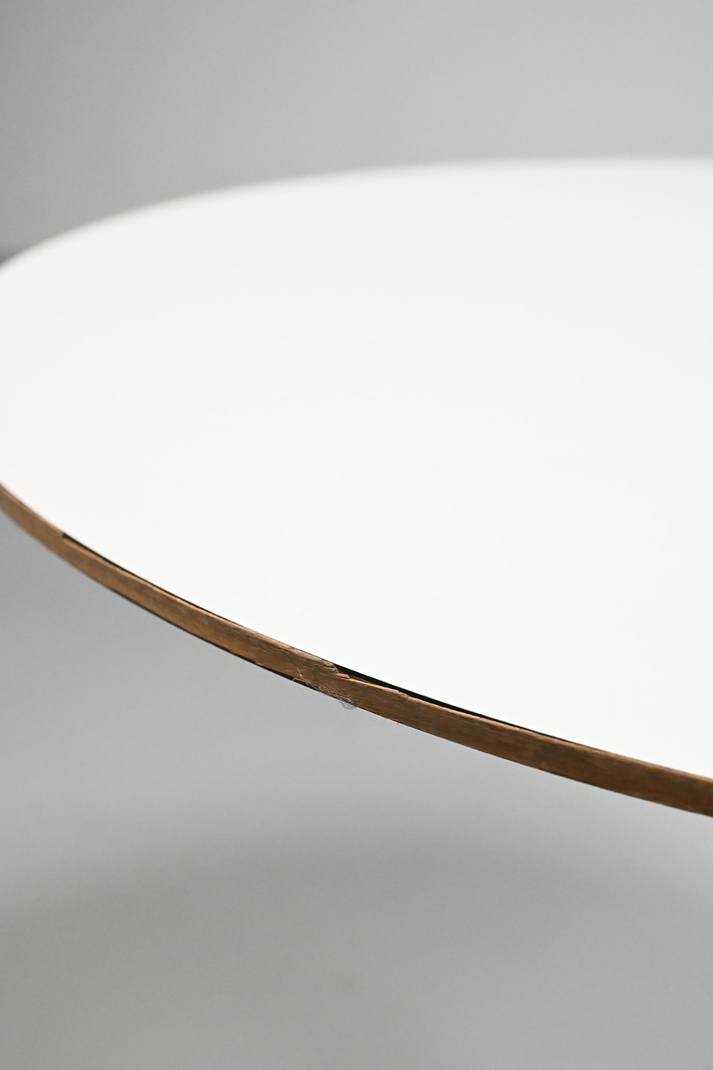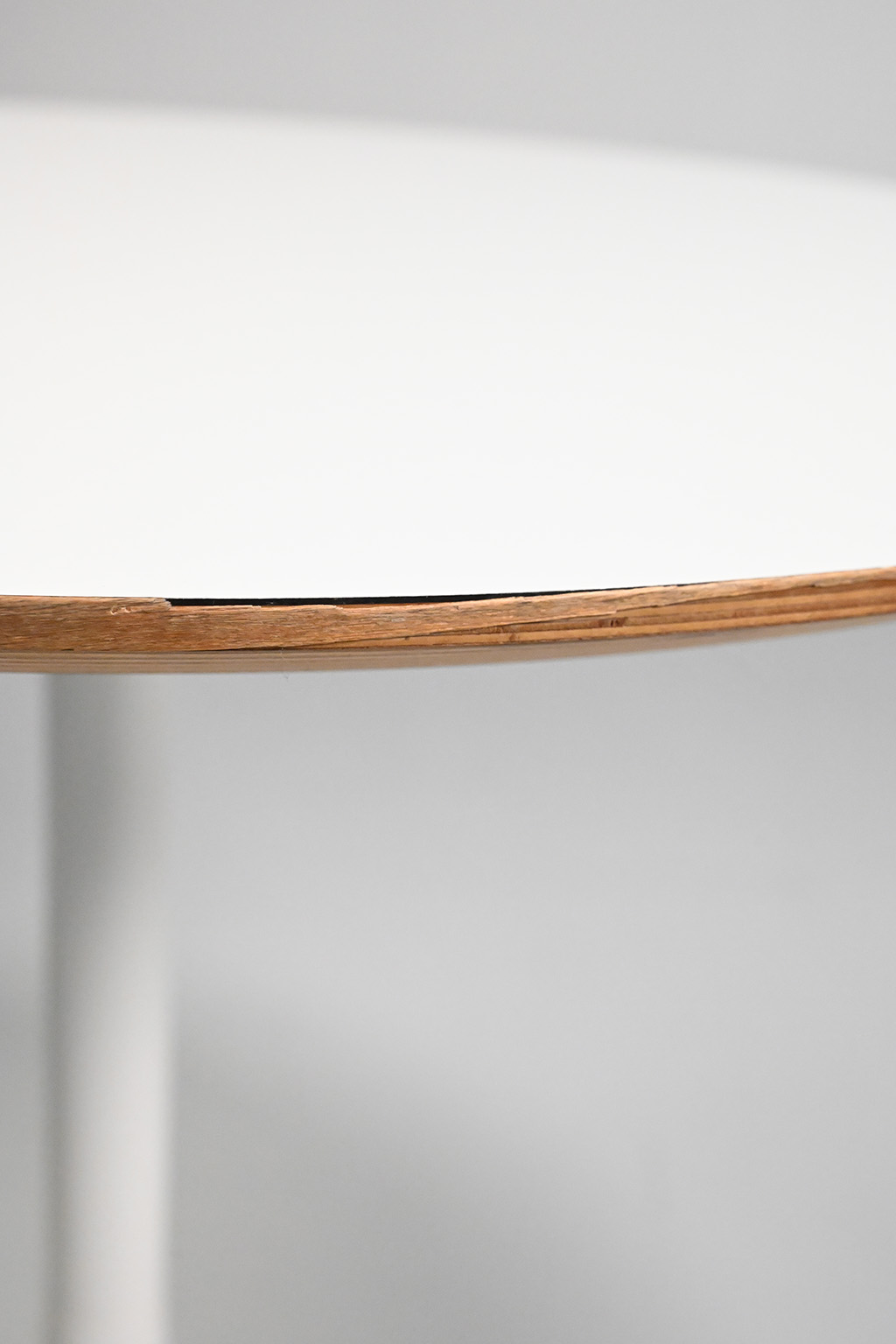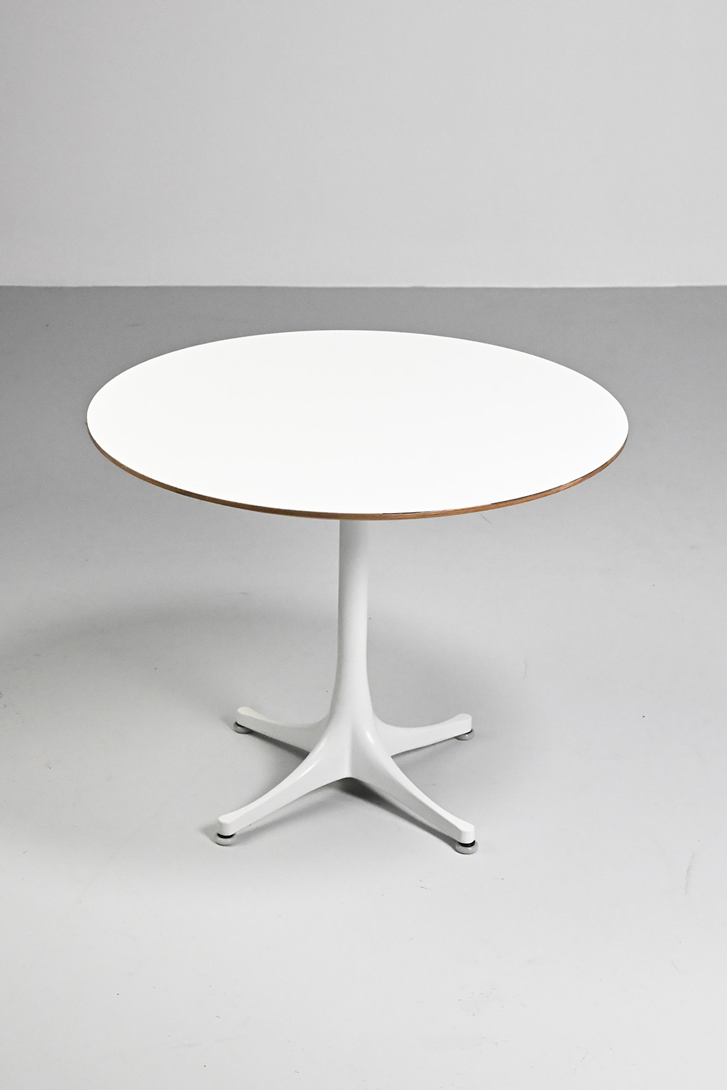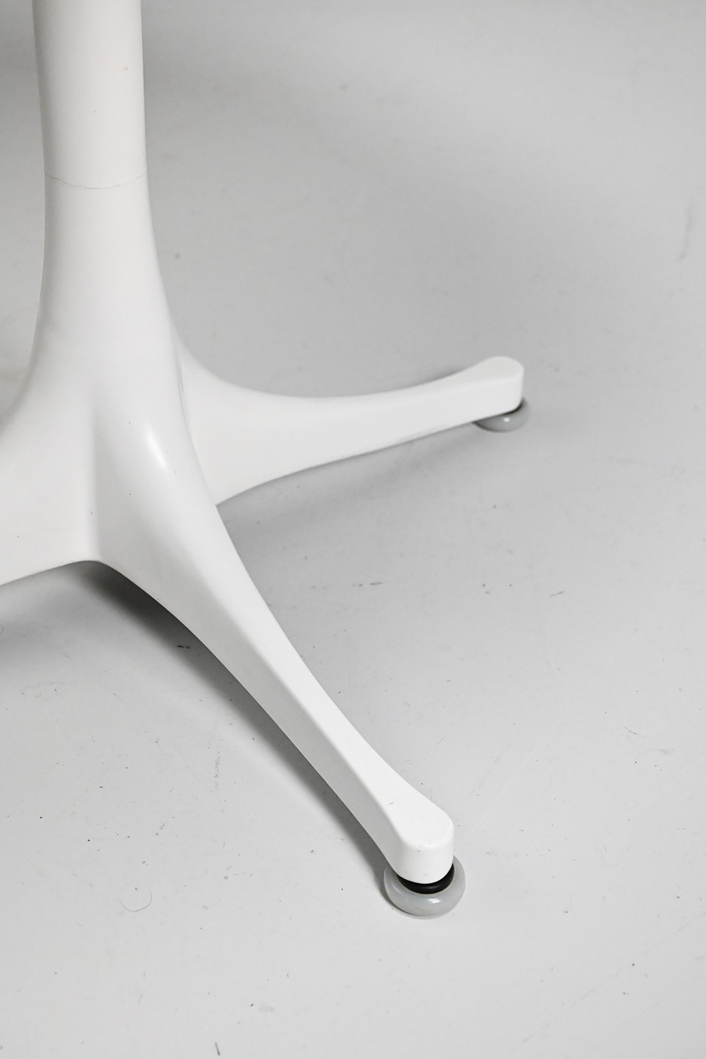 Nelson model 5452 for Herman Miller pedestal table. George Nelson designed this timeless modern classic in 1954. The side table is made from a white lacquered metal frame and a laminated table top.