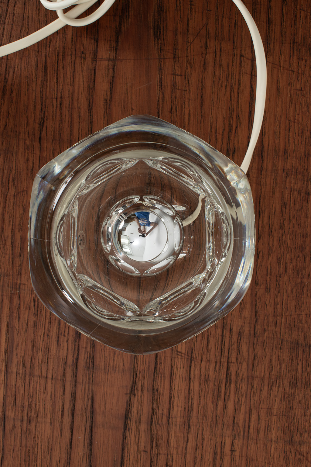 Peill & Putzer table lamp made from thick glass in a hexagon shape.