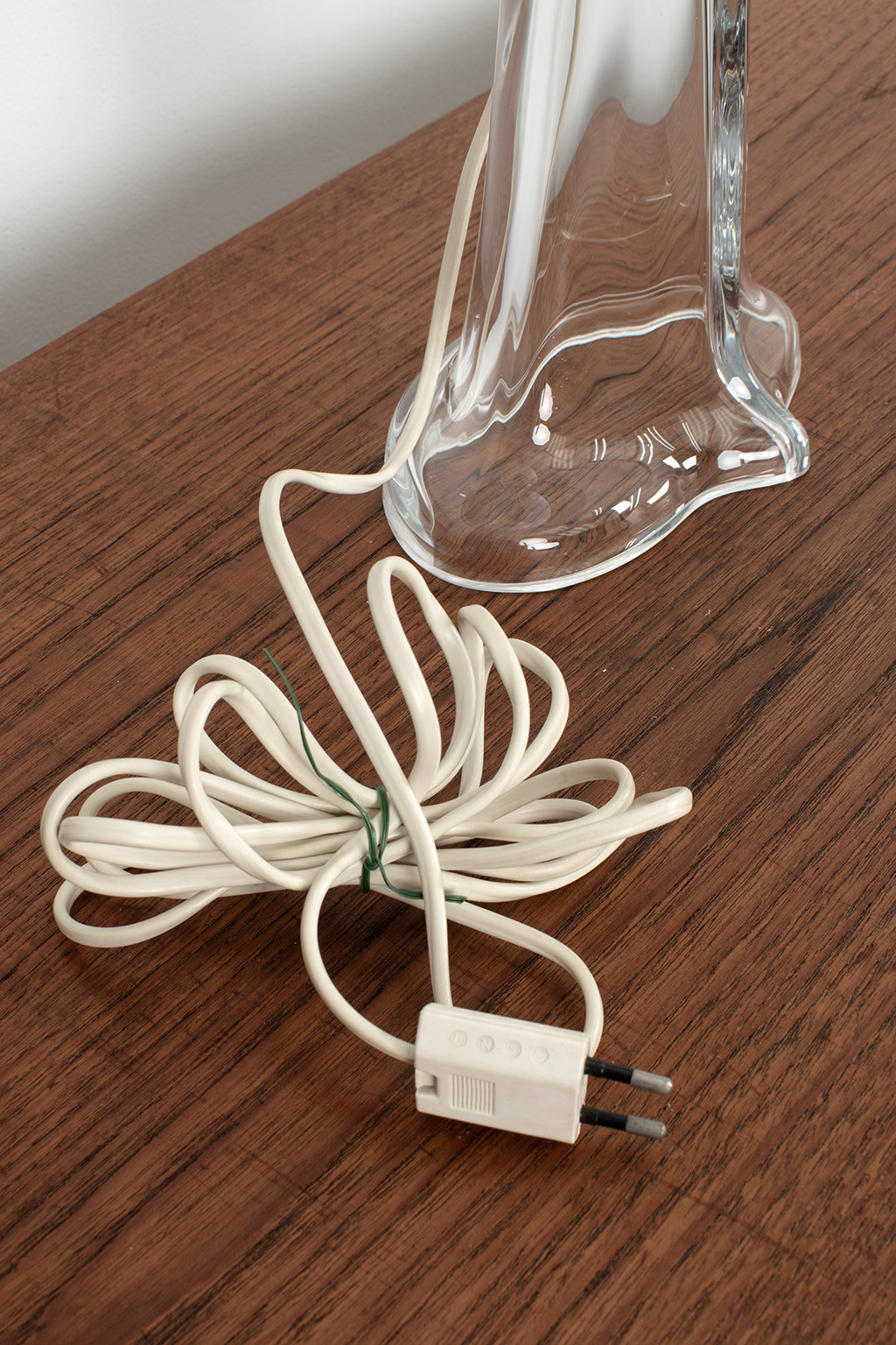 Peill & Putzer table lamp made of clear glass. The logo is engraved.