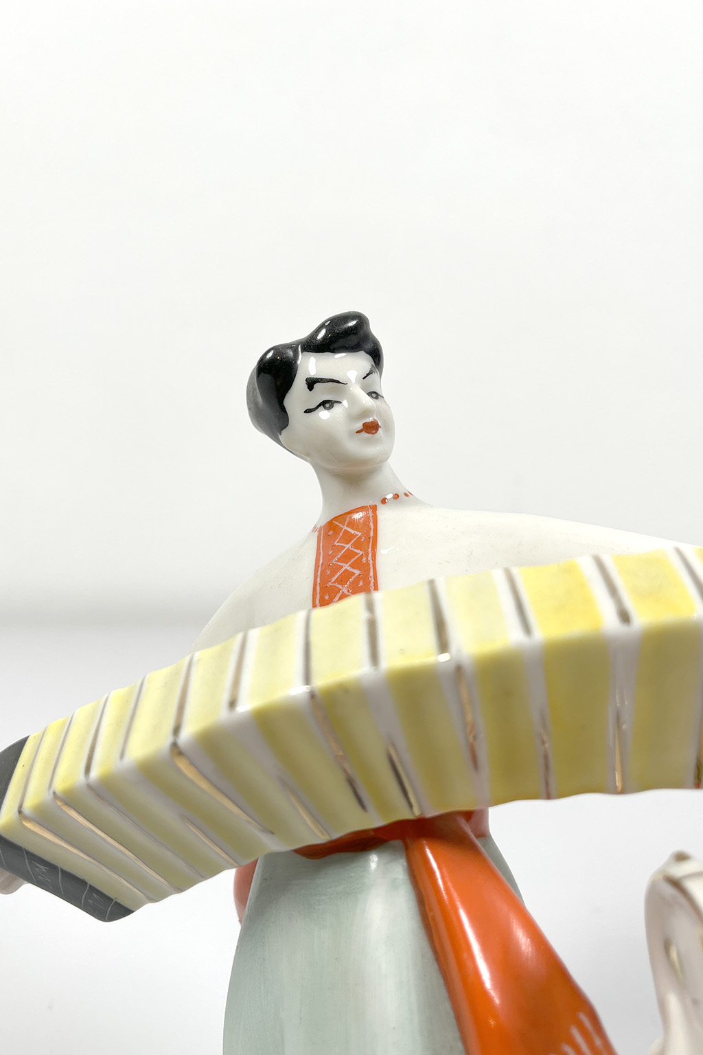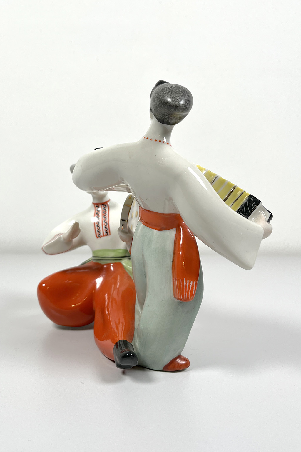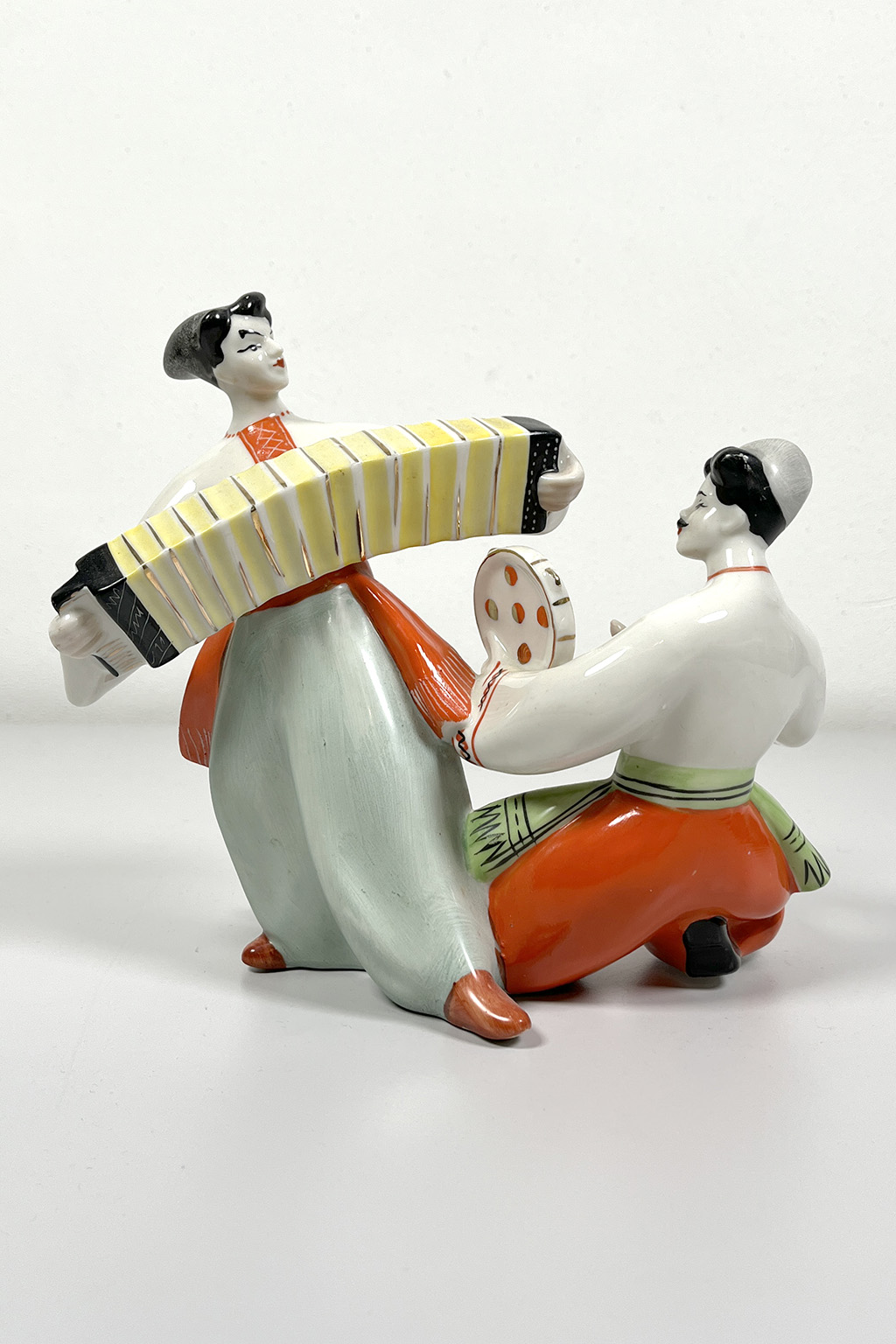 Porcelain musicians from the Ukraine (made in former USSR). The musicians are also dancing the ‘Hopak’; a traditional Ukraine dance. The statue is made in the Polonne porcelain factory and is in good vintage condition.