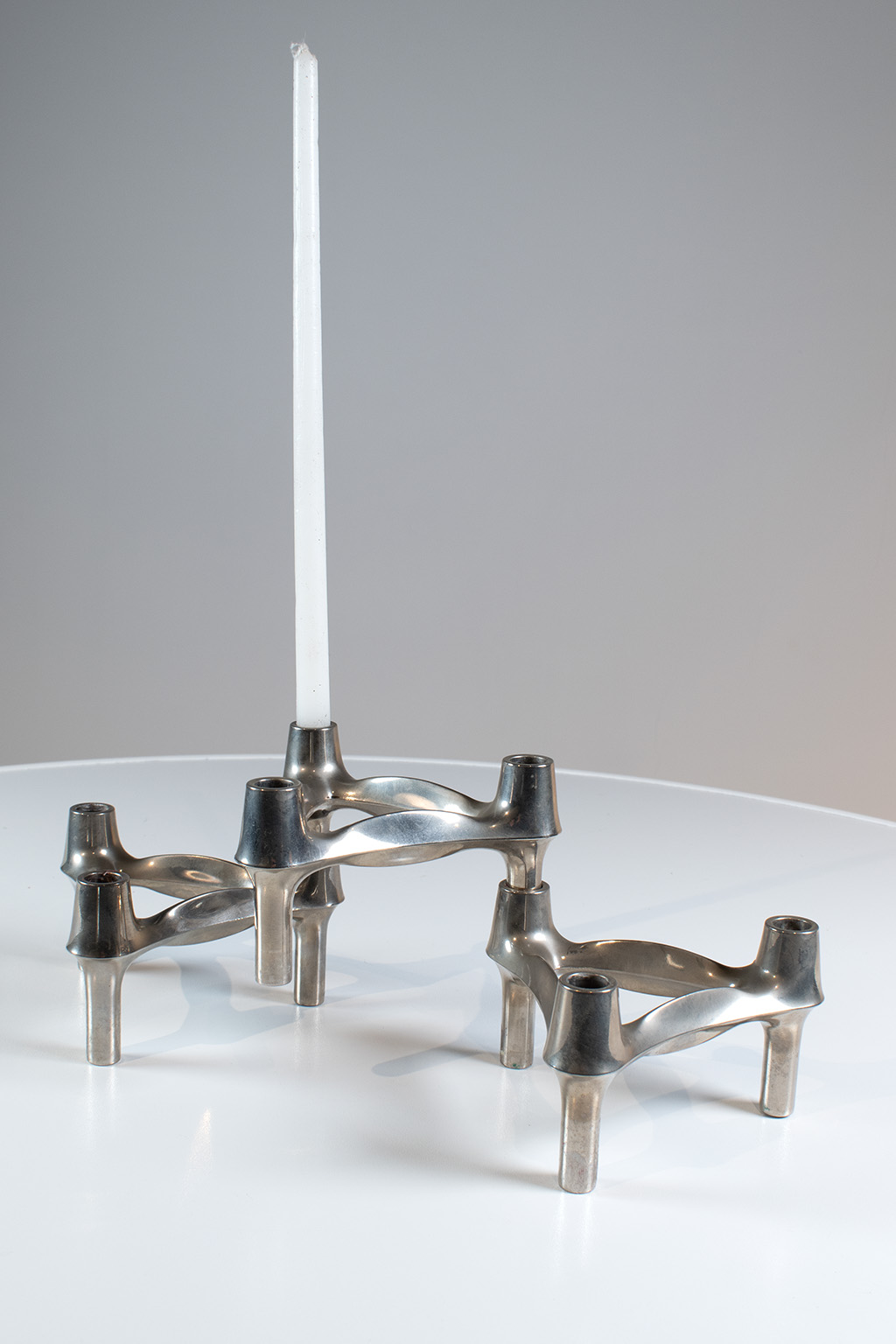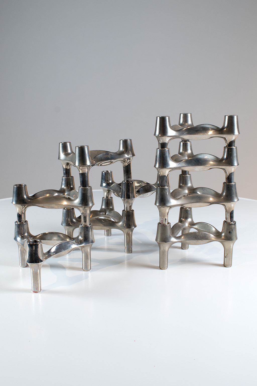 Set of 9 BMF candle holders. Designed in the 70’s but still a very popular item. These vintage candle holders are nog polished and is a mix of shiny and matt patinated metal.
