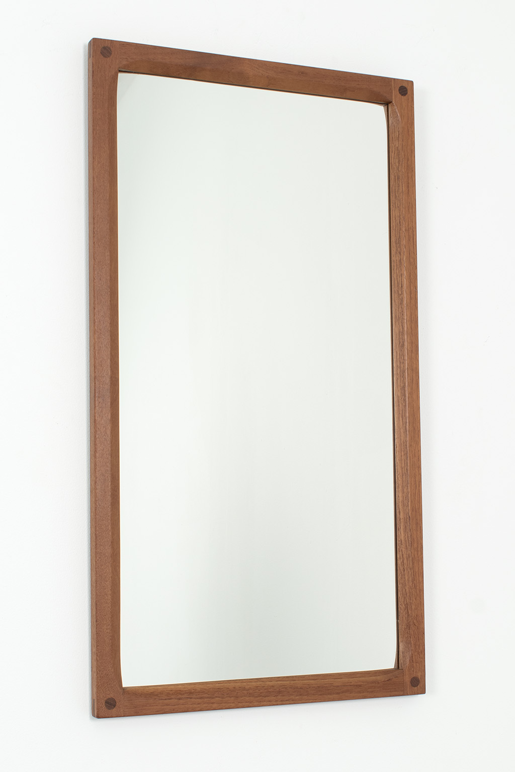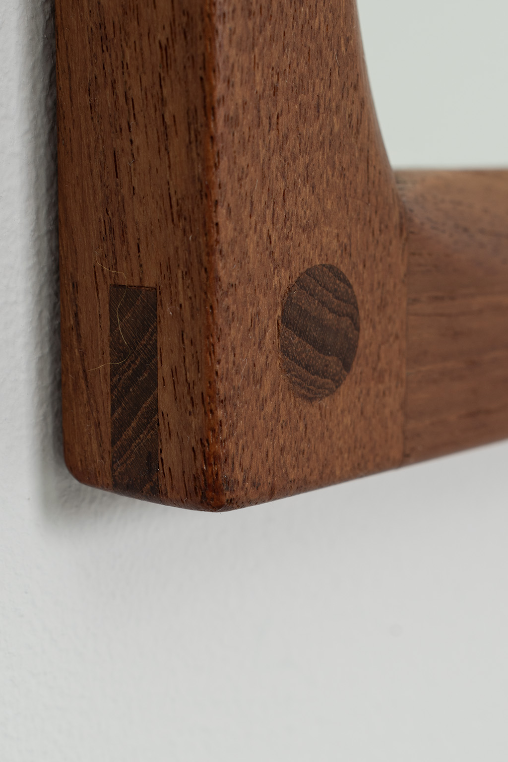 Aksel Kjersgaard voor Odder Møbler spiegel met een prachtige teakhouten lijst waarbij de houtverbindingen mooi zichtbaar zijn. Deze spiegel is ontworpen in de jaren 60 in Denemarken.