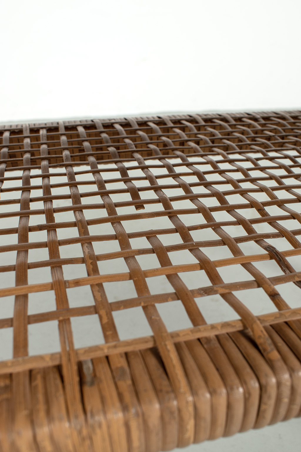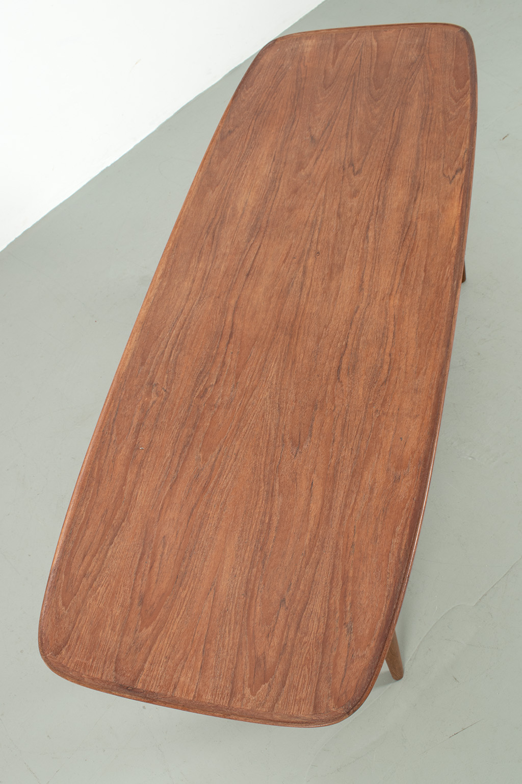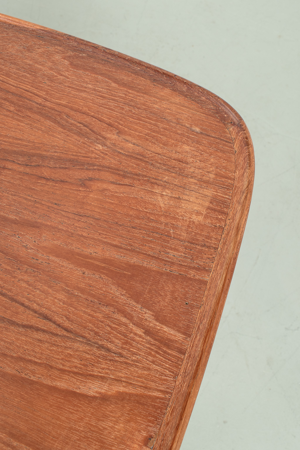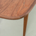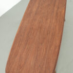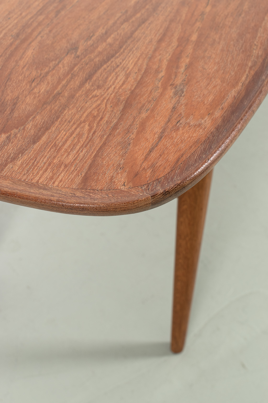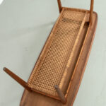 Børge Mogensen salontafel voor het Deense Fredericia Stolefabrik. Deze teak en eiken tafel uit de jaren 50 heeft een lectuurvak gemaakt van rotan. Er ontbreekt een klein stukje rotan (zie foto) maar verder is deze tafel in een goede vintage staat.
