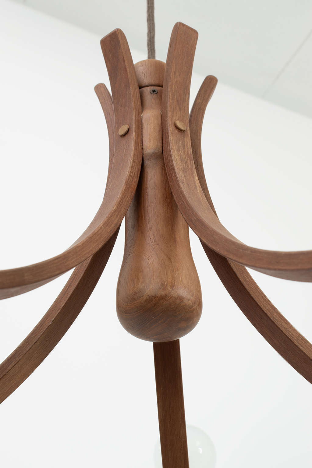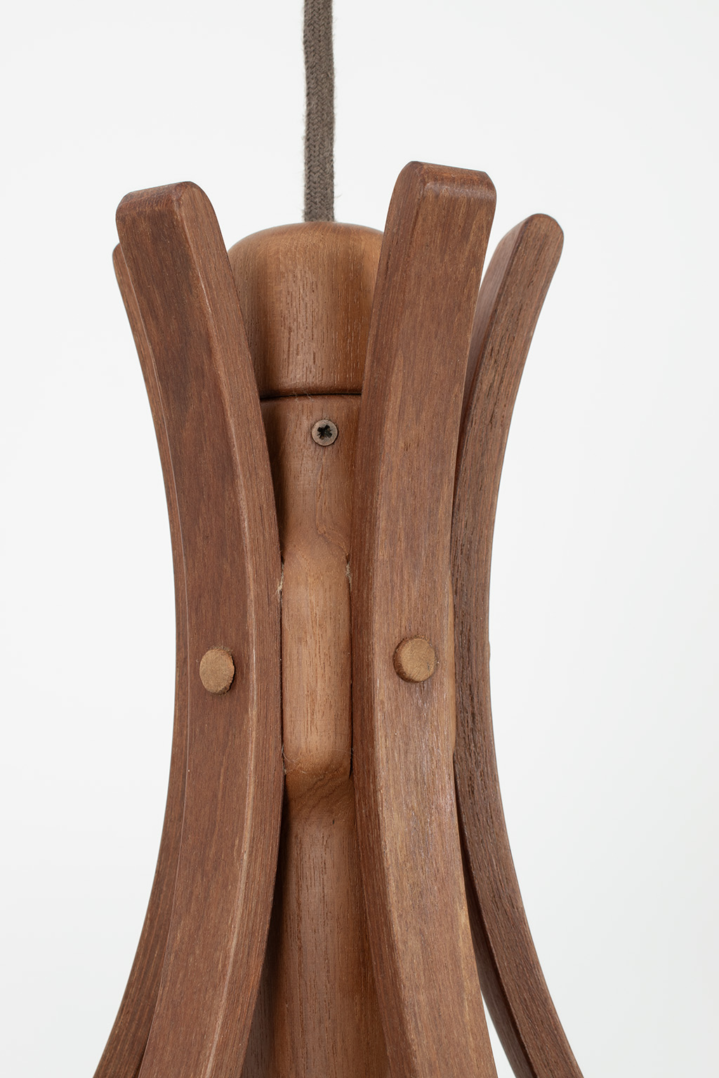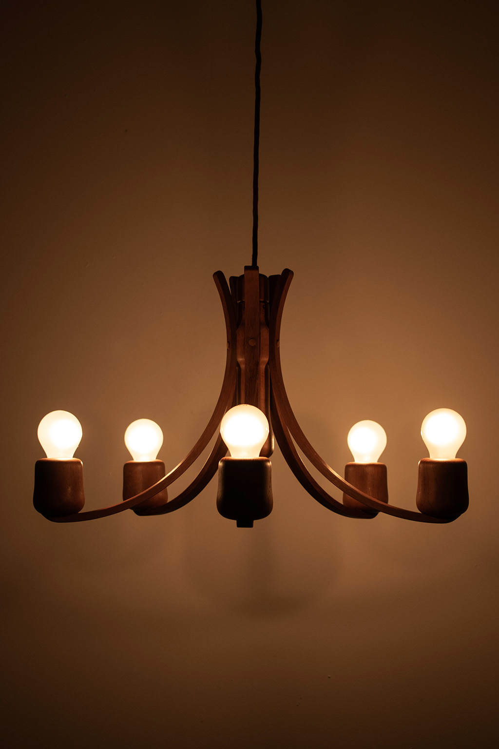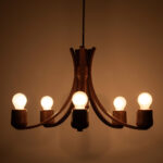 Domus kroonluchter (2 stuks op voorraad) met 5 armen. Gemaakt van teak hout. Lichtbronnen zijn exclusief en dus naar eigen inzicht te bepalen.