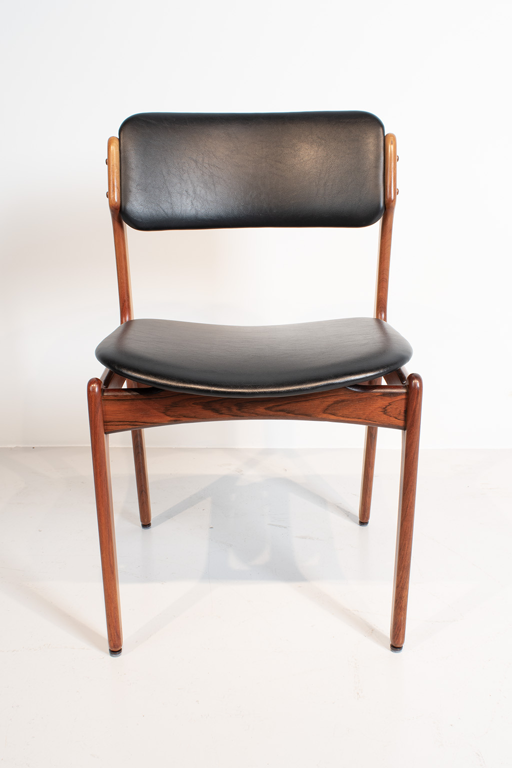 Erik Buch set van 6 stoelen; 2x model 50 en 4x model 49. De stoelen zijn gemaakt van prachtig palissander en met skai bekleding.