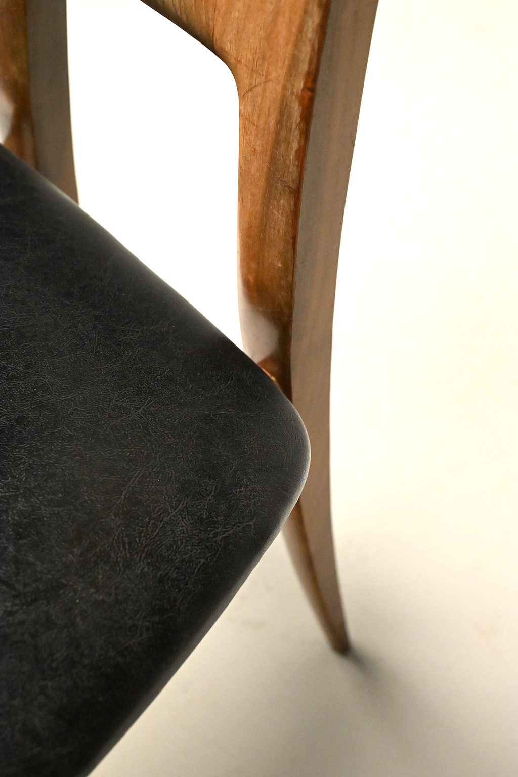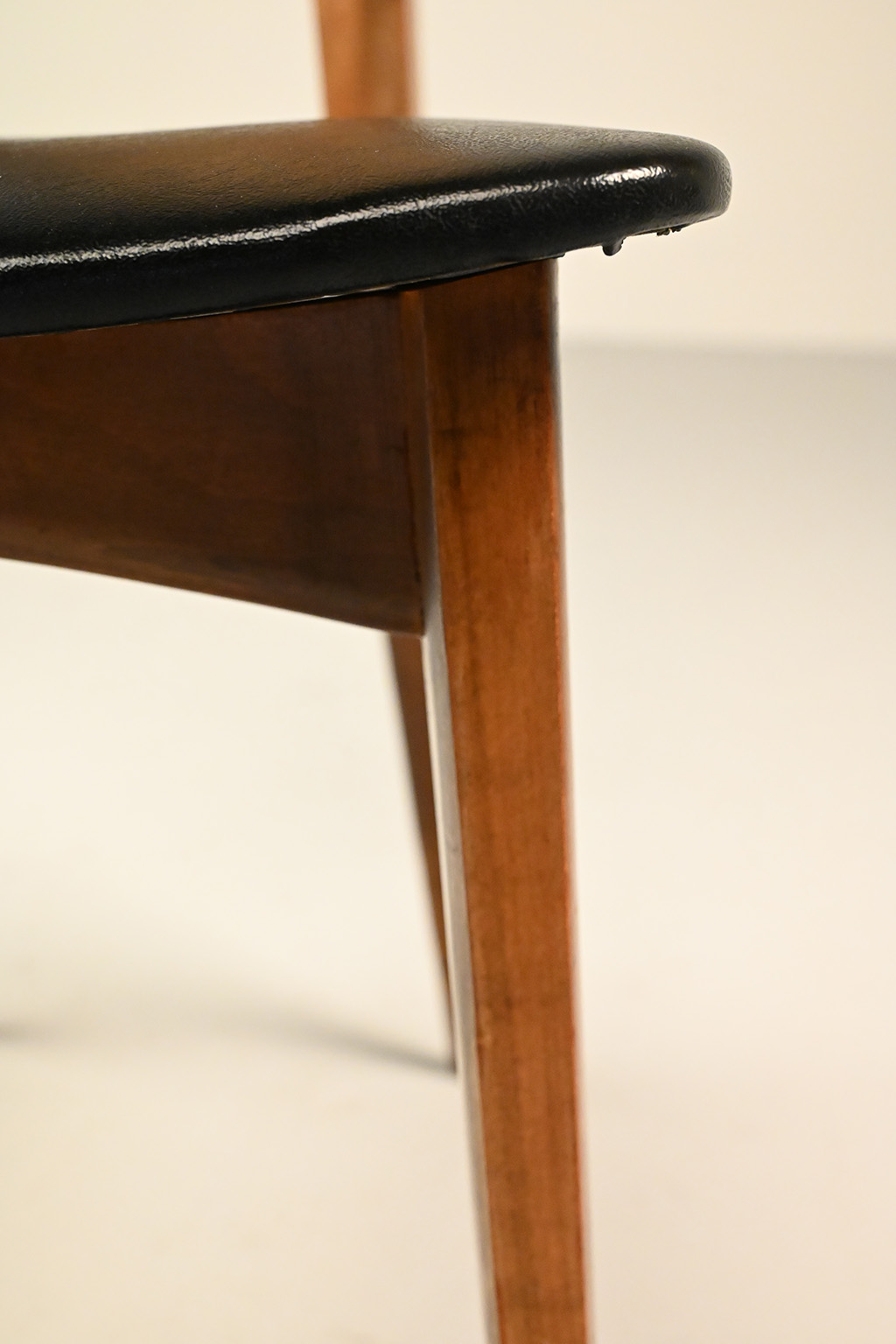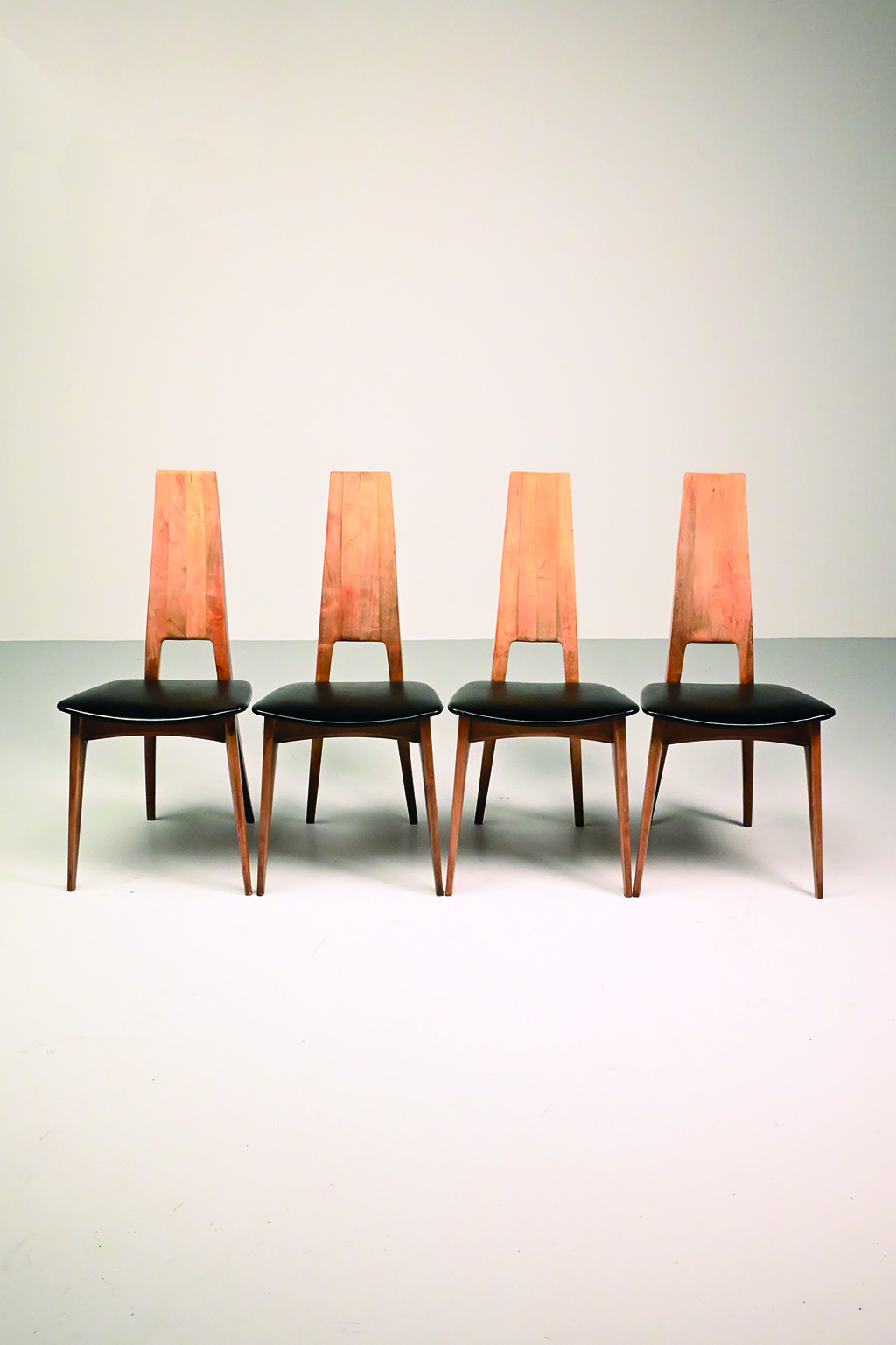 Ernst Martin Dettinger stoelen geproduceerd in de jaren 70/80. Deze set van 4 is bekleed met zwarte skai (met leernerf). De skai ziet er nog prima uit maar de houten frames zouden wel een opknapbeurt mogen hebben. Daarom bieden we ze aan voor deze lage prijs.