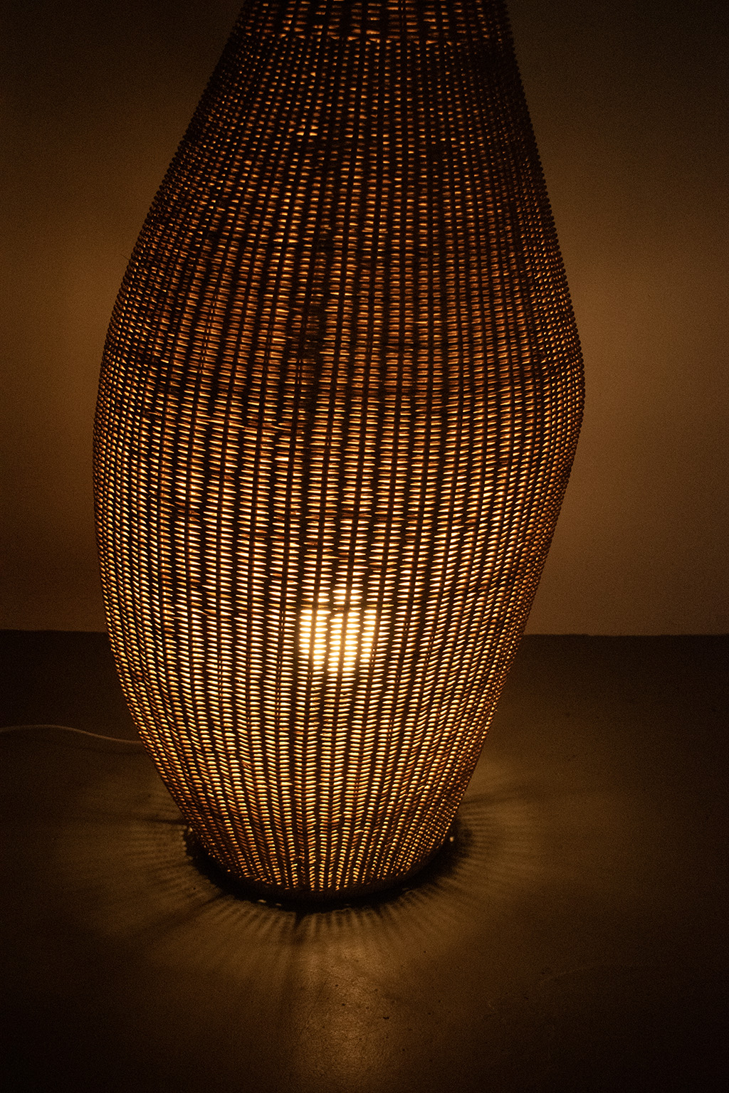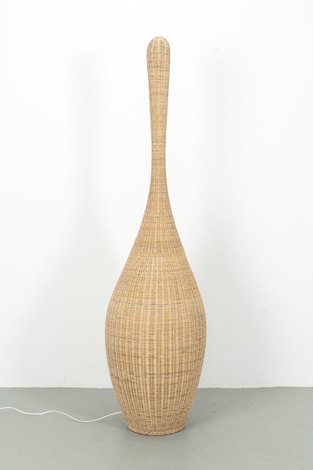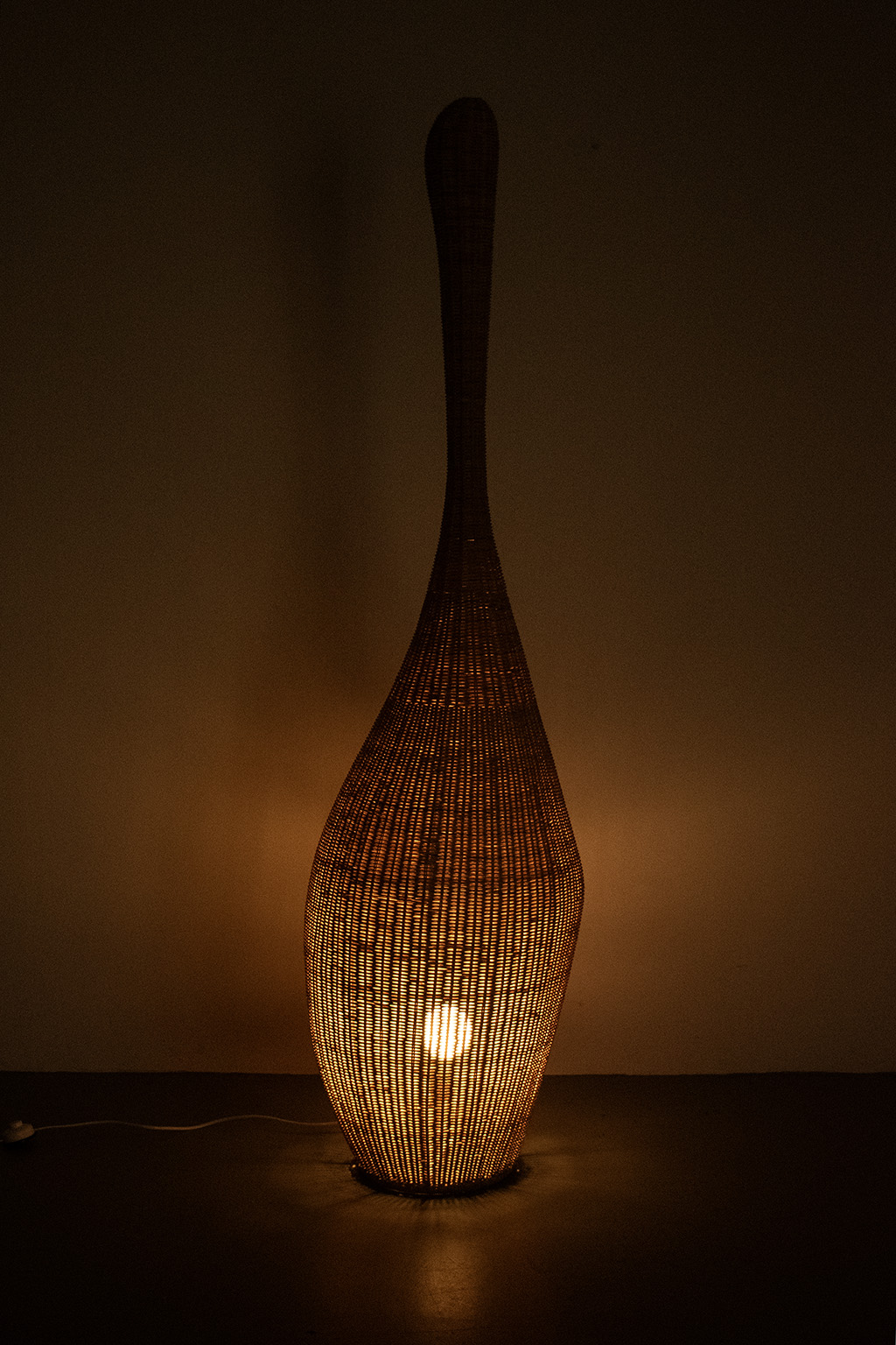 Gervasoni Bolla vloerlamp maat L. Michael Sodeau ontwierp deze lamp rond 2000 in 4 verschillende maten (S, M, L en XL). De constructie is gemaakt van naturel rotan.
