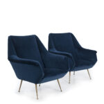 Set van 2 Italiaanse fauteuils in blauwe fluweel