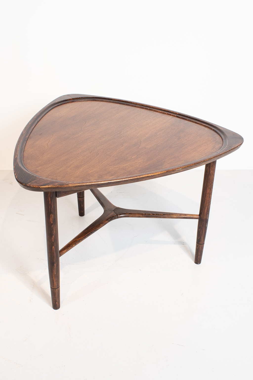 Kurt Østervig bijzettafel nr. 176 Danish Applied Art, door Jason Ringsted geproduceerd in de jaren 50. Dit exemplaar heeft een teak blad met donker gebeitst frame/rand.