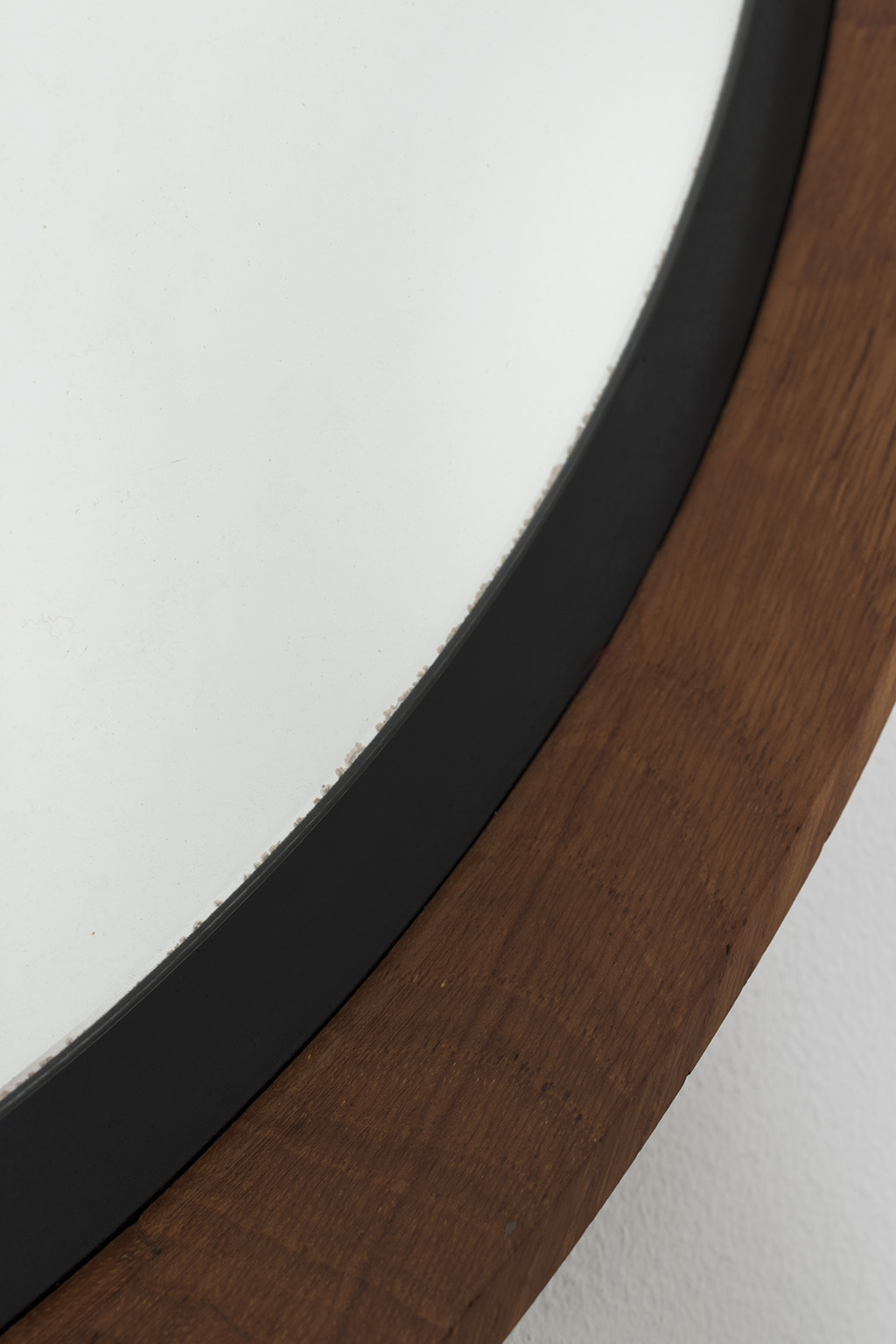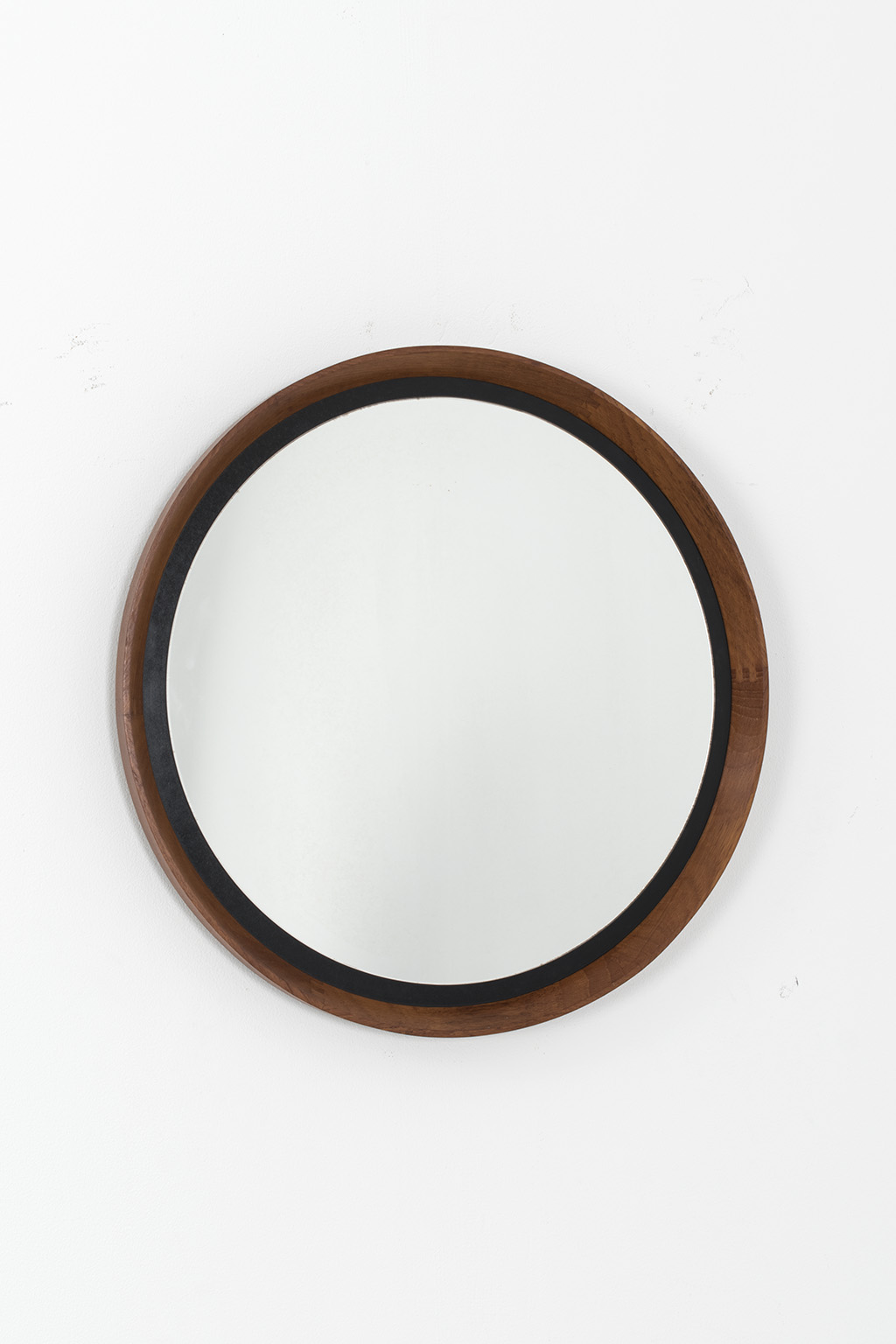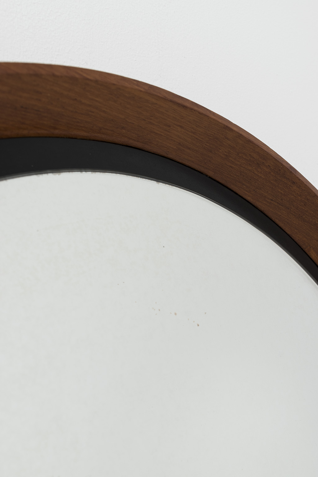 Prachtige Luxus spiegel van de makers Uno & Östen Kristiansson uit Zweden. Het ronde frame is gemaakt van teakhout en heeft een elegante afwerking.