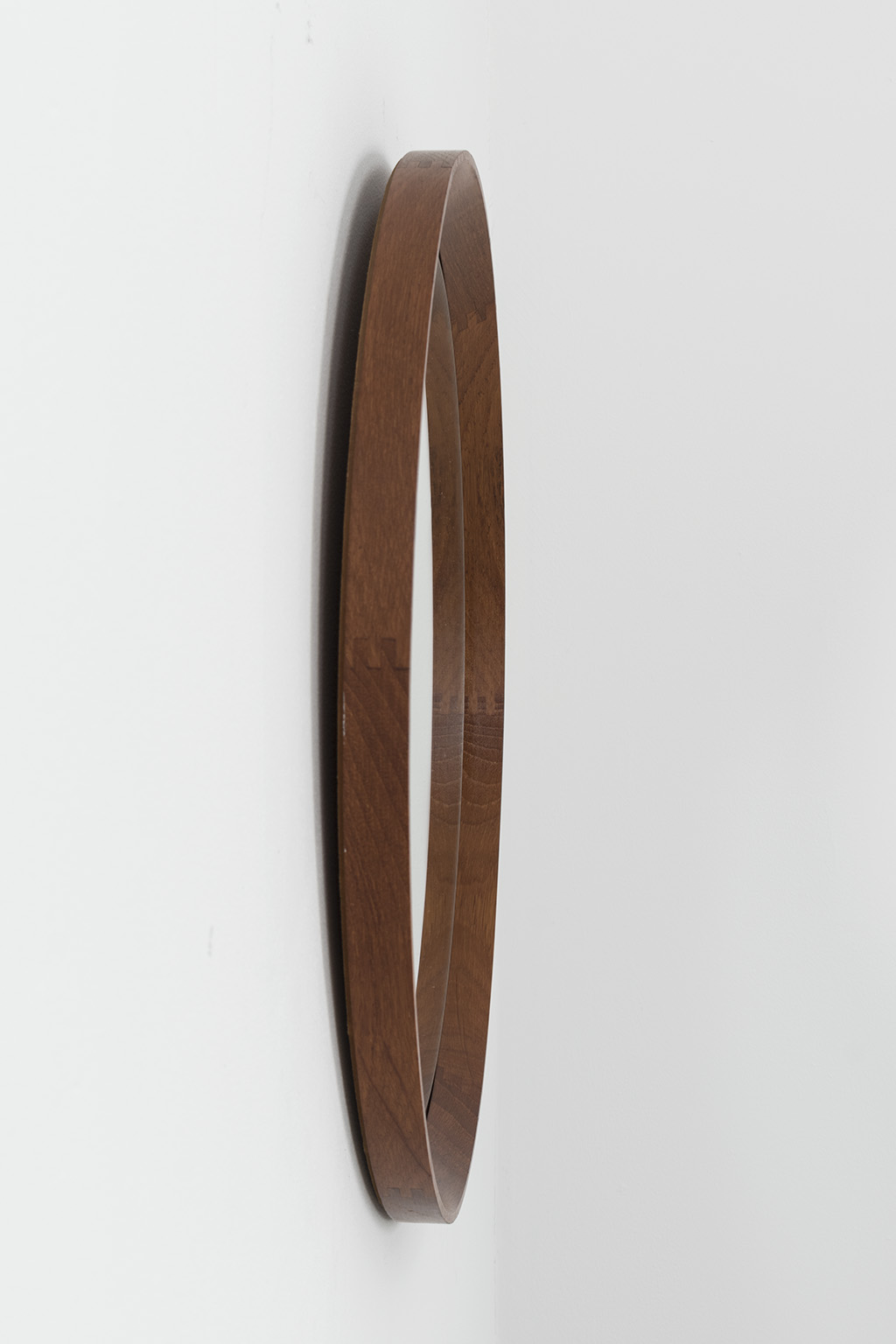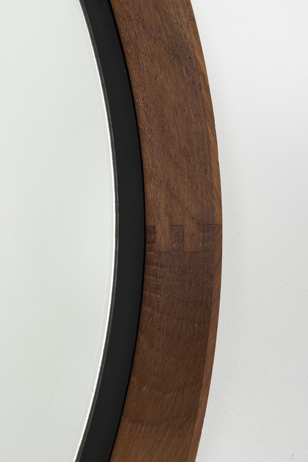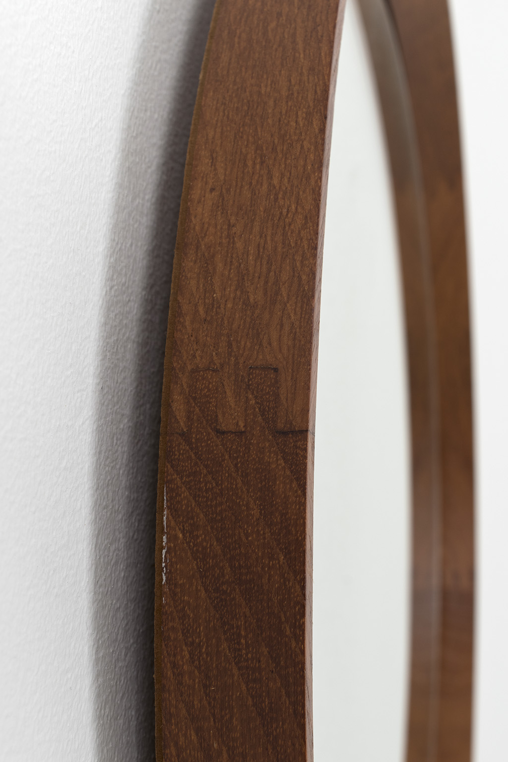 Prachtige Luxus spiegel van de makers Uno & Östen Kristiansson uit Zweden. Het ronde frame is gemaakt van teakhout en heeft een elegante afwerking.