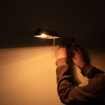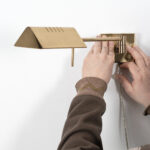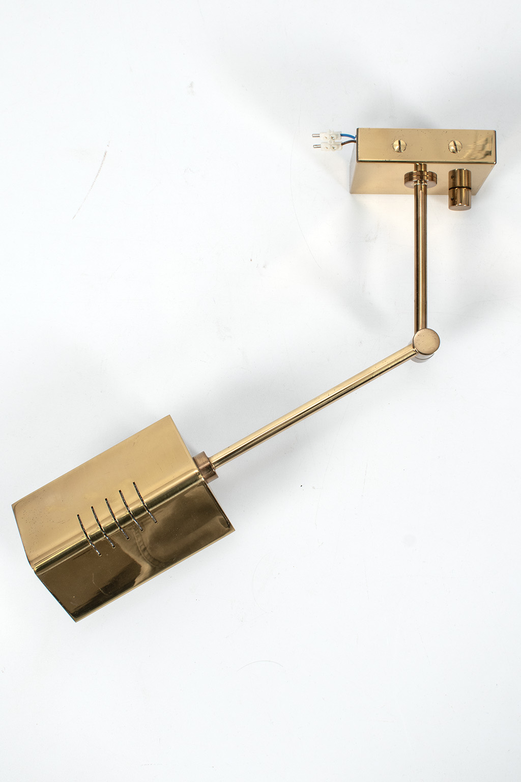 Messing wandlamp met verstelbare knikarm.