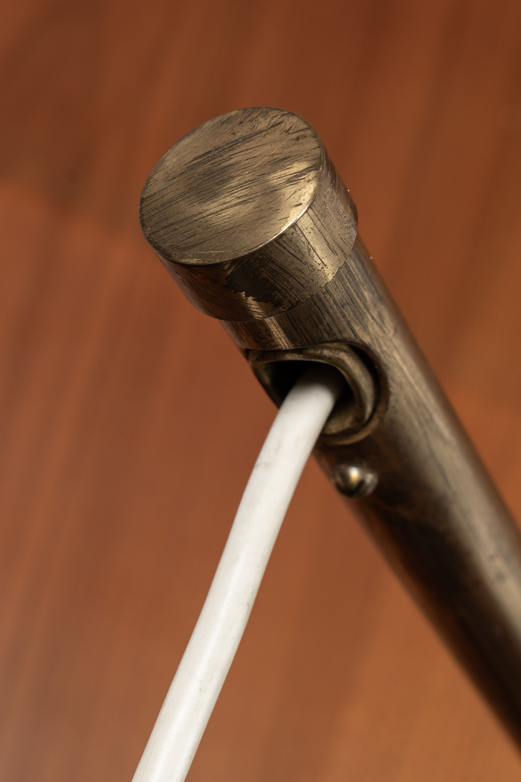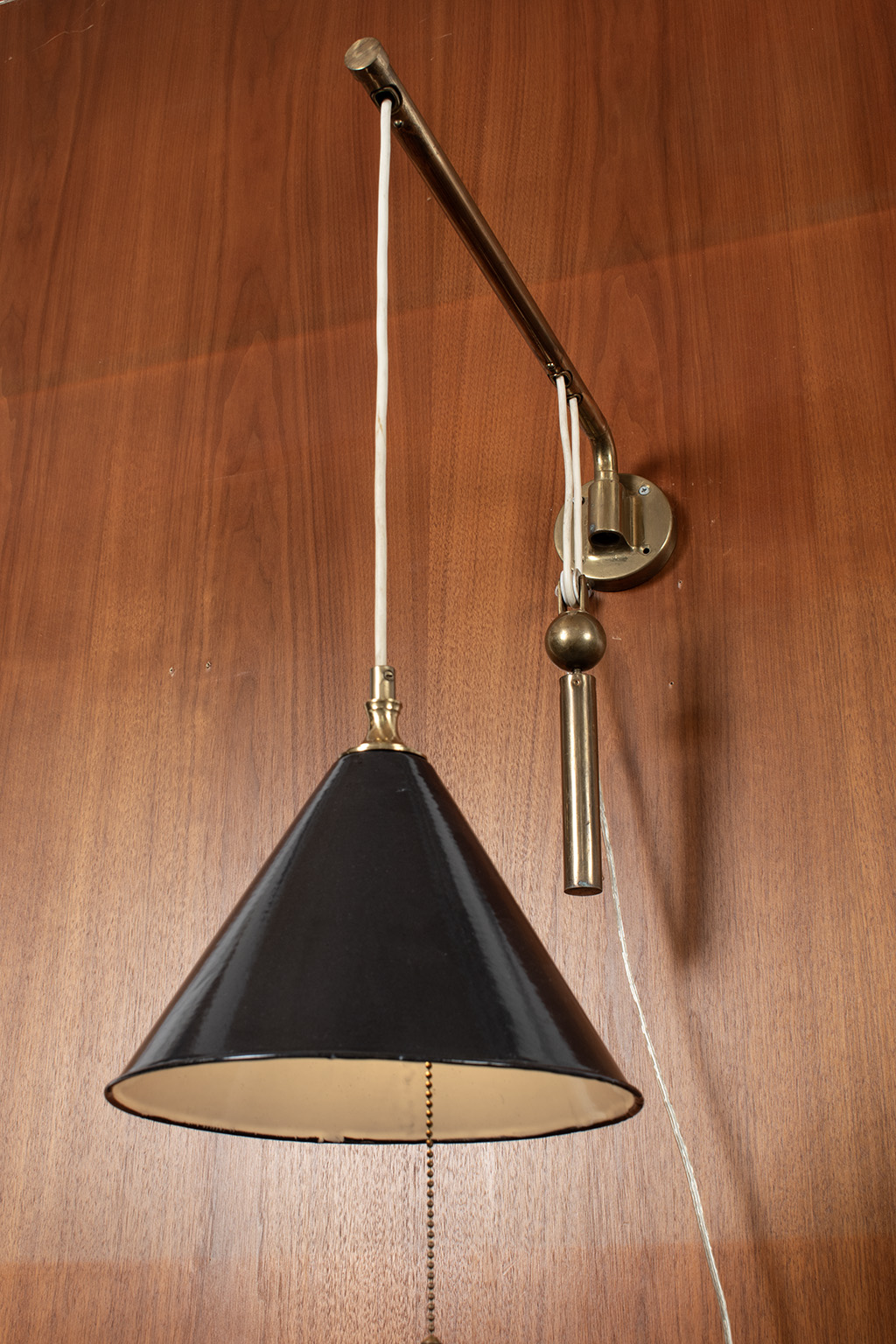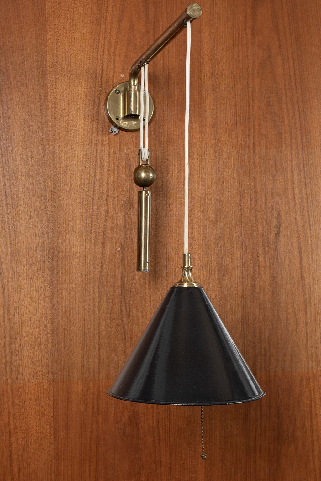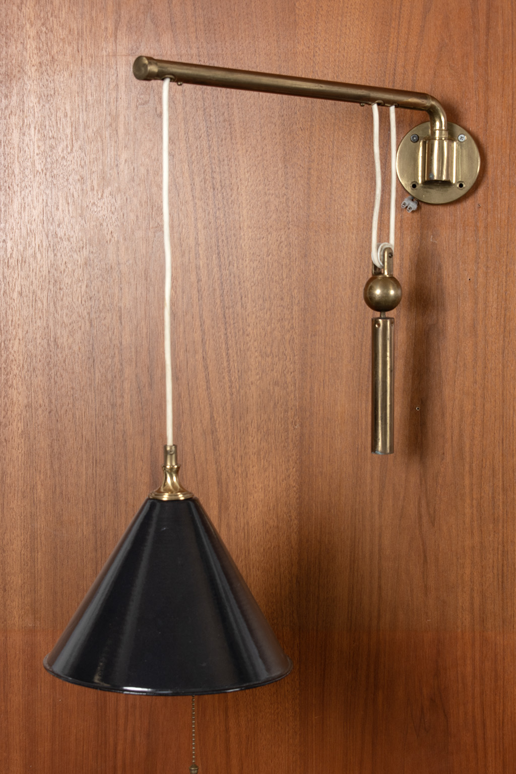 Messing zwenklamp met contra gewicht voor het aanpassen van de hoogte van de lamp.