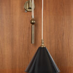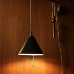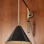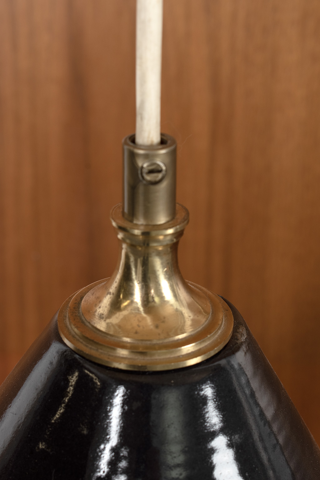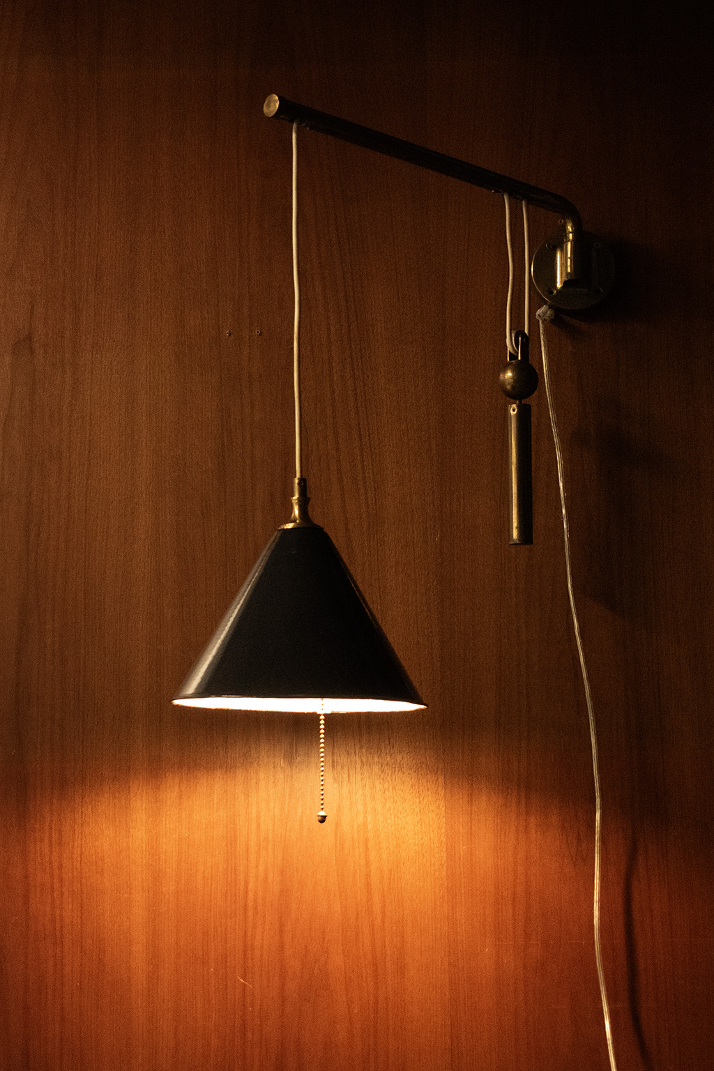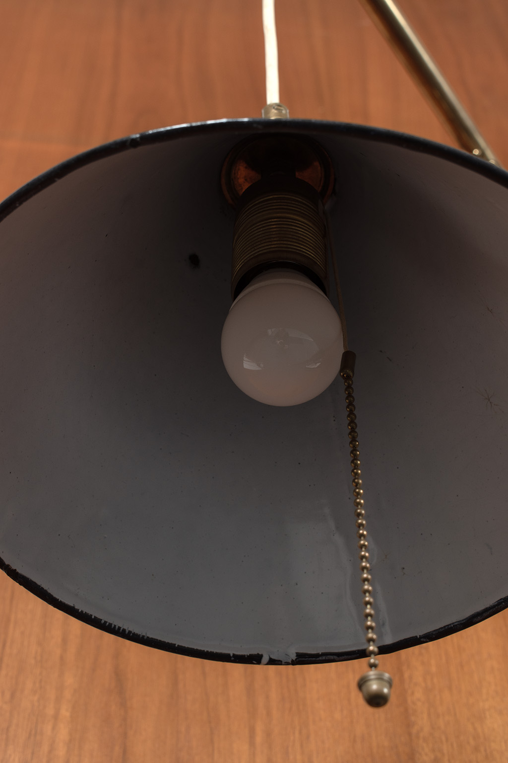 Messing zwenklamp met contra gewicht voor het aanpassen van de hoogte van de lamp.