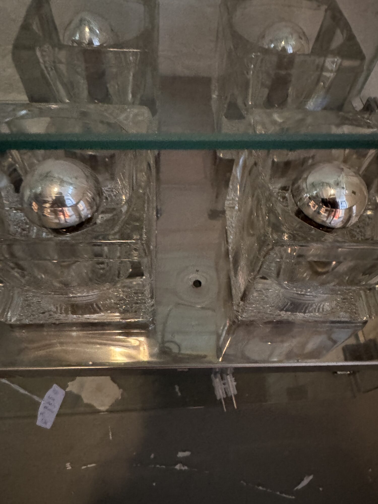 De lamp heeft wat krasjes in de vorm van een cirkel doordat de glazen kap daar op vast gedraaid is.
