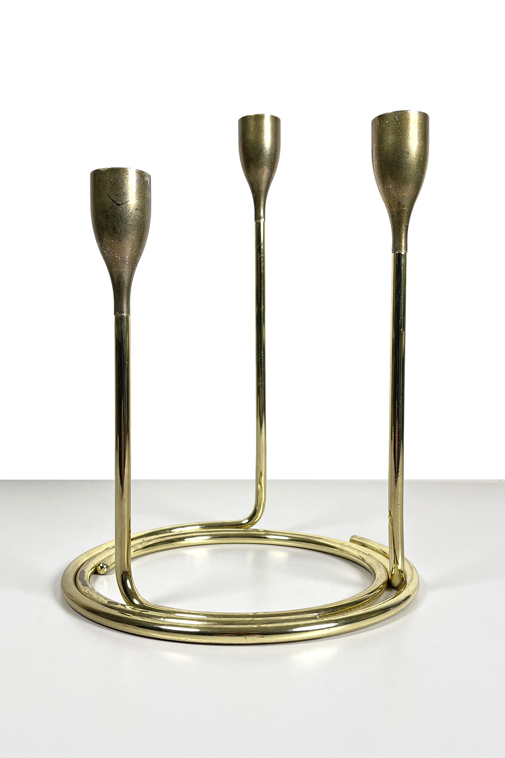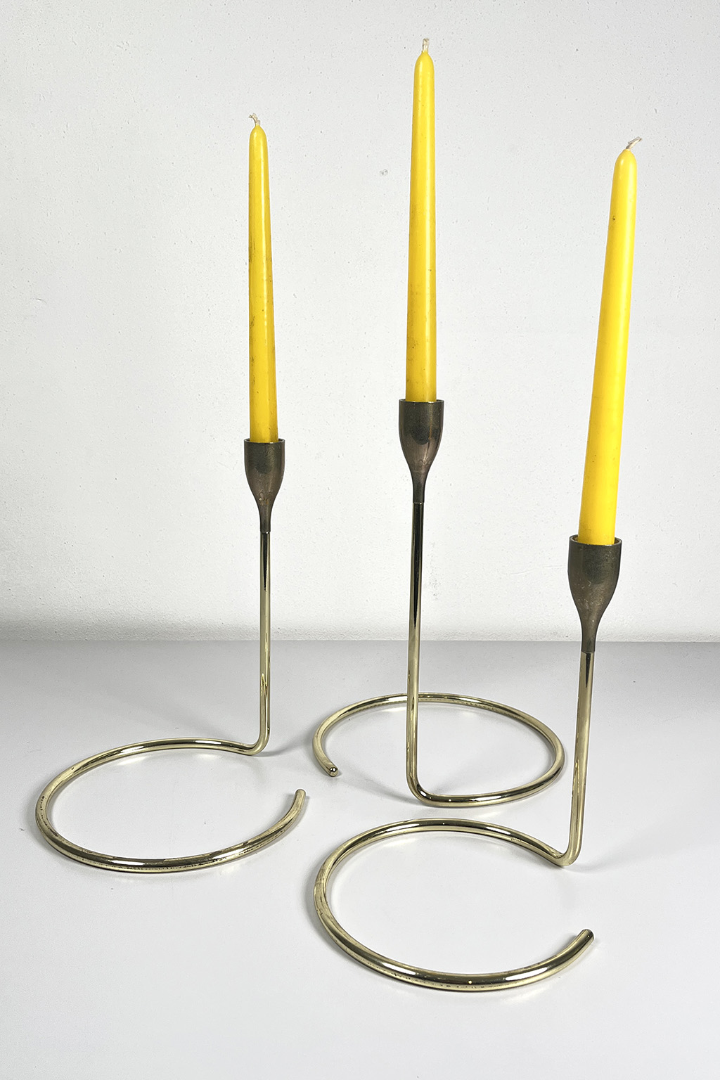 Set messing kandelaars uit Denemarken. 3 Stuks die je uiteraard los kunt neerzetten maar gecombineerd zijn ze naar ons idee het mooist. Het massieve messing heeft wat patina wat de kaarsenhouders alleen maar charmanter maakt.