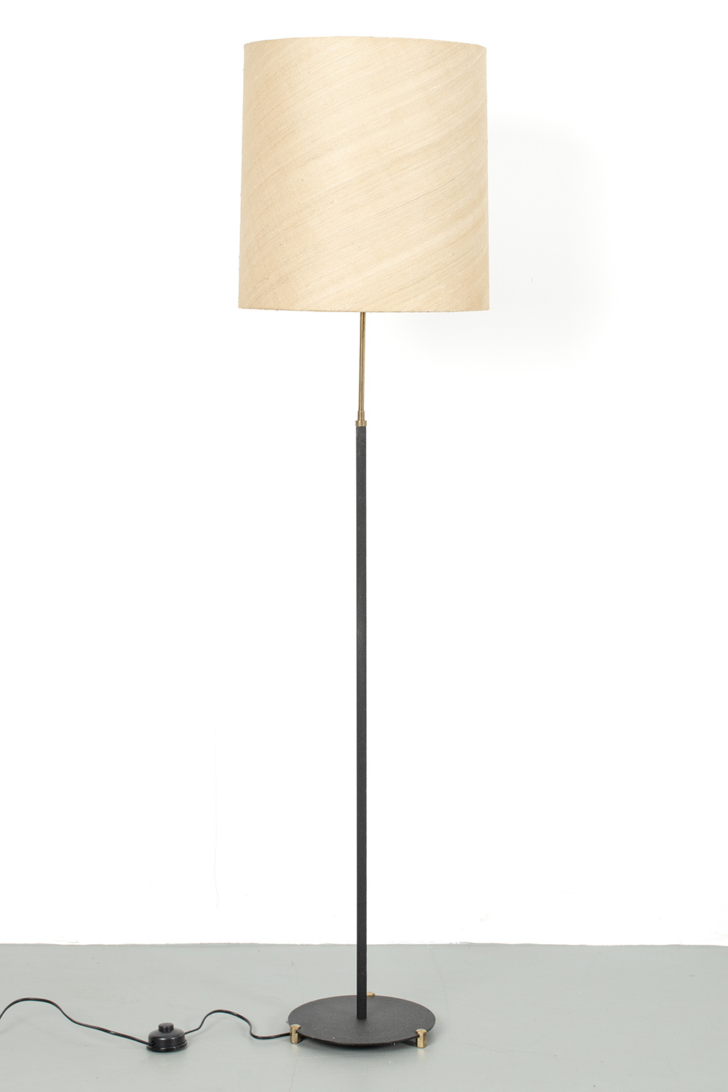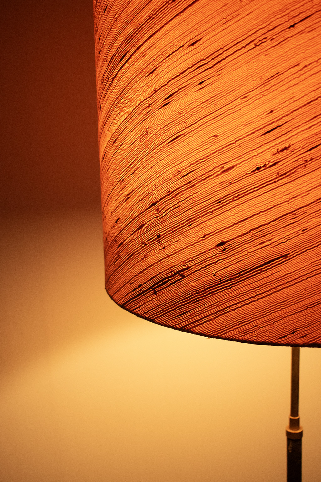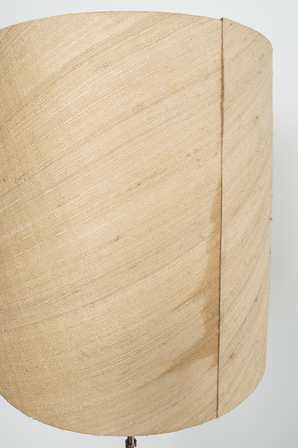 Vintage 60’s vloerlamp met mooie details zoals krimplak en messing delen. De kap heeft helaas bij de naad een vlek. Deze valt niet op als je de lamp in een hoek of met als achtergrond een muur plaatst. Anders zou je hem nog kunnen vervangen.