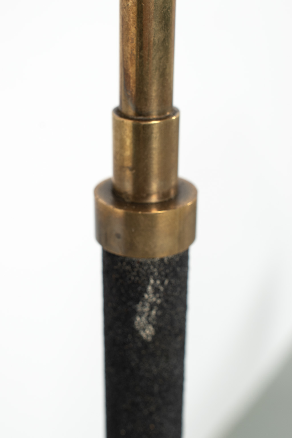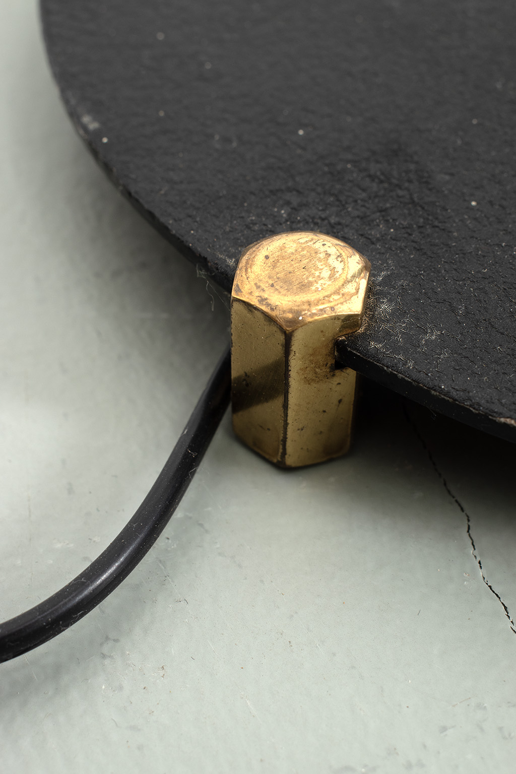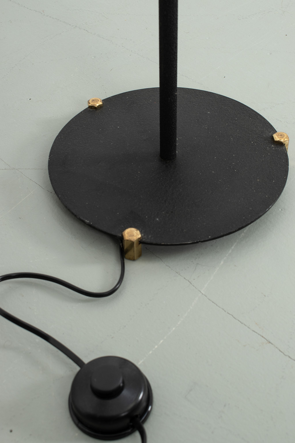 Vintage 60’s vloerlamp met mooie details zoals krimplak en messing delen. De kap heeft helaas bij de naad een vlek. Deze valt niet op als je de lamp in een hoek of met als achtergrond een muur plaatst. Anders zou je hem nog kunnen vervangen.