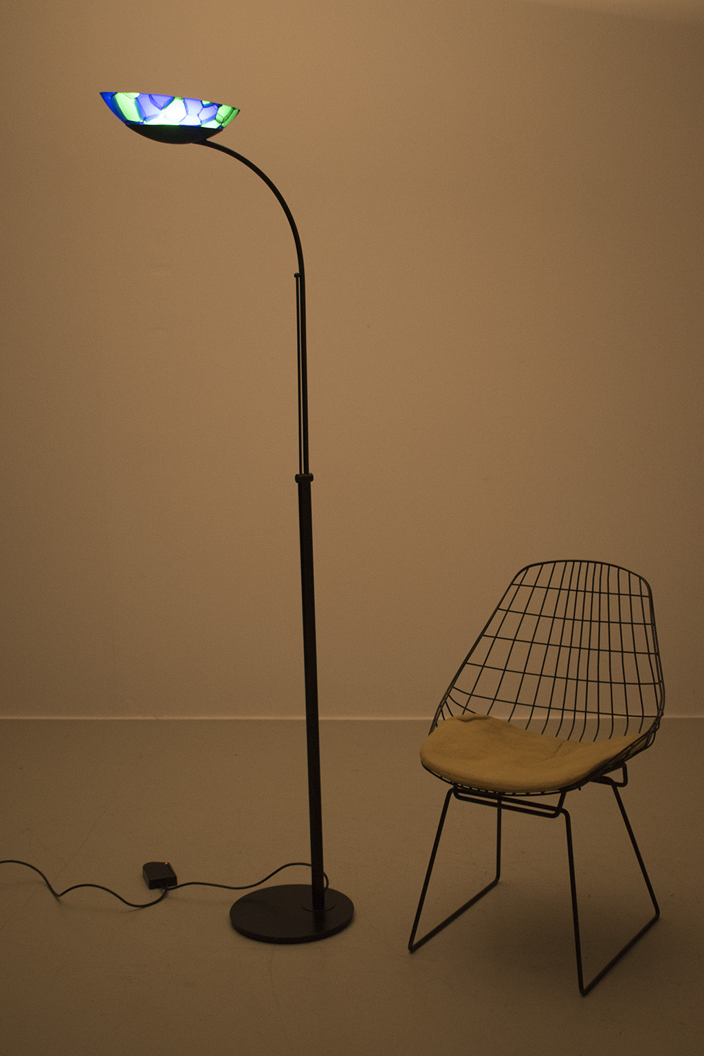 Mooie vintage halogeen vloerlamp/uplight van Herda uit Nederland met een dimmer aan het snoer. De lamp heeft een prachtig multicolor glazen kapje. Heeft wat gebruikssporen passend bij de leeftijd zoals wat krassen op de voet (zie foto’s 7 en 8). In een prima vintage staat.