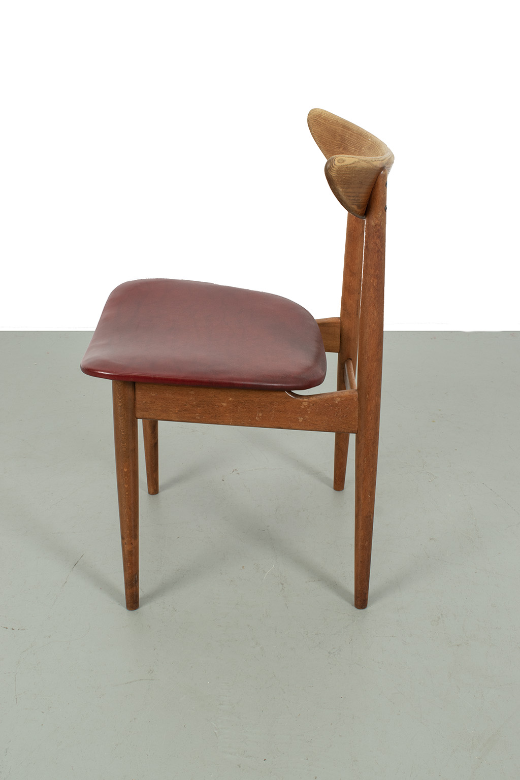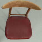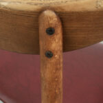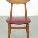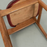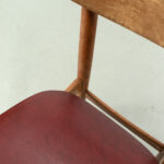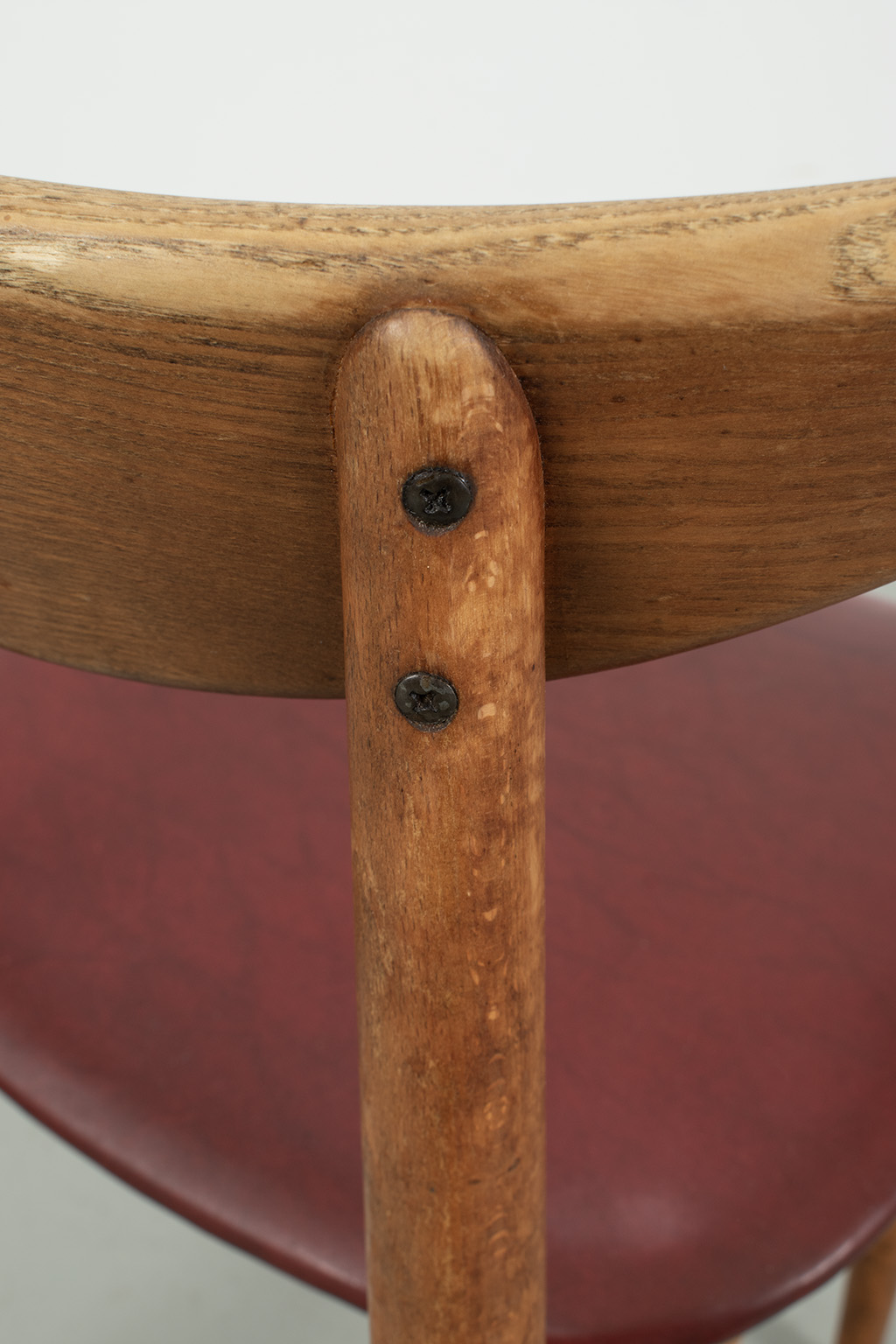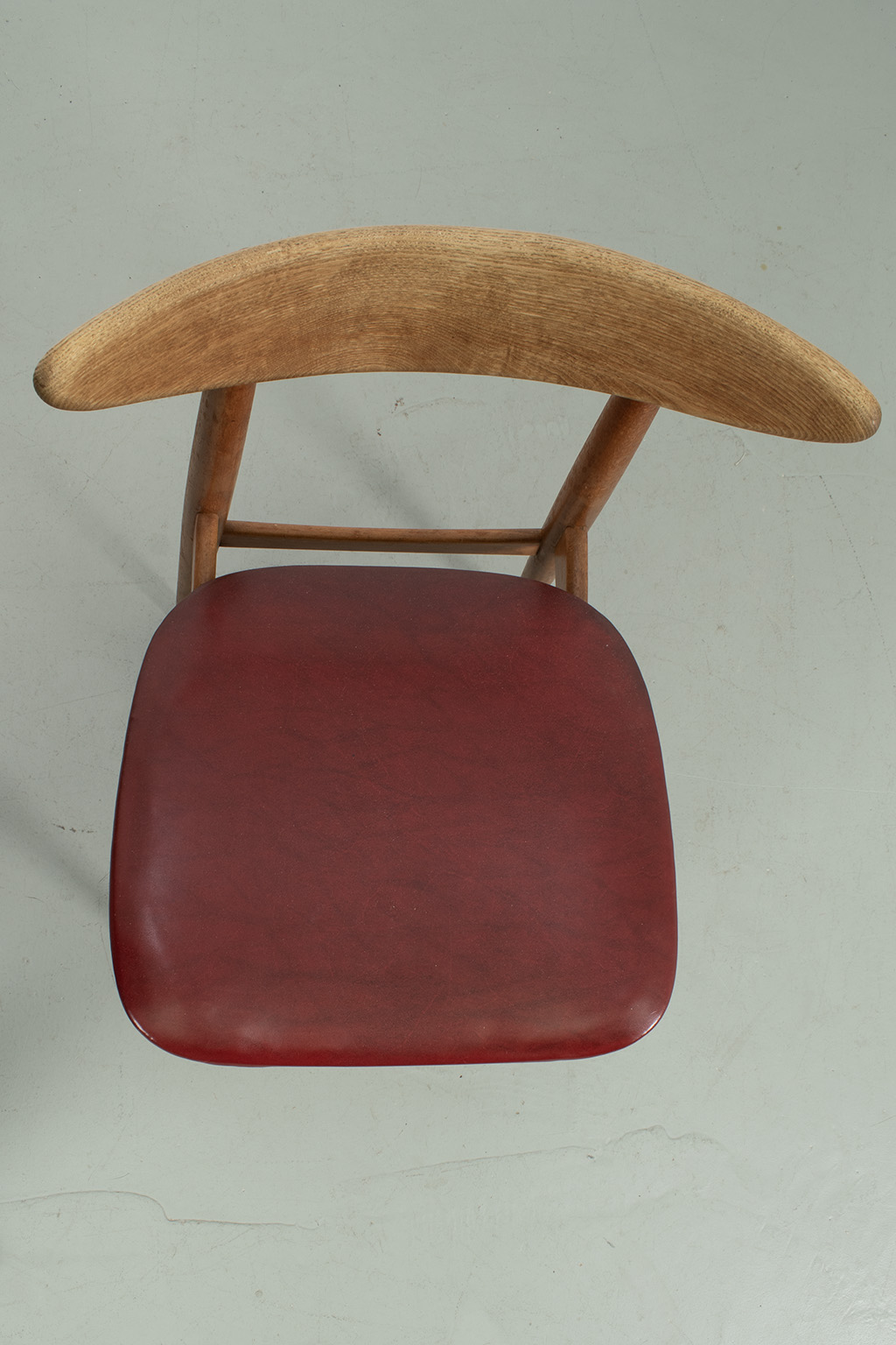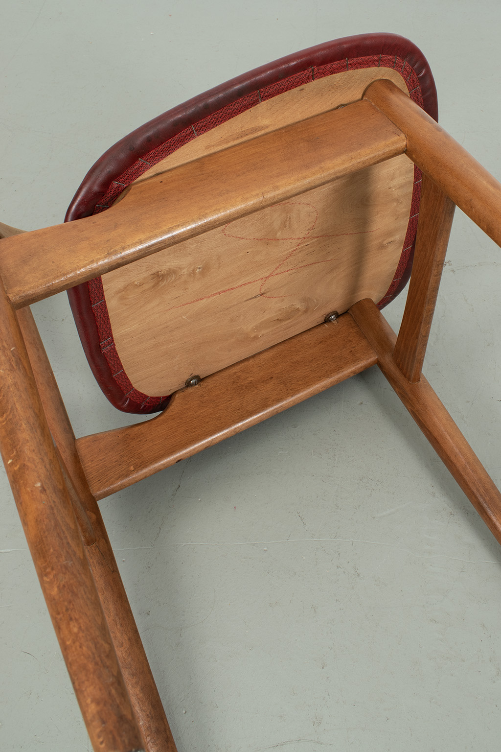 Vintage stoel met rode skai. De stoel is gemaakt van eikenhout.