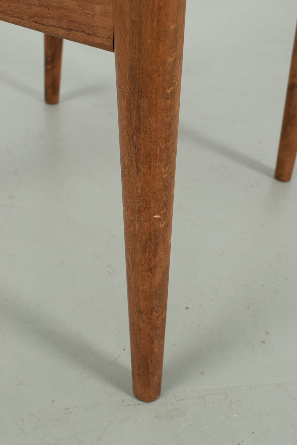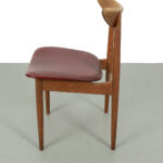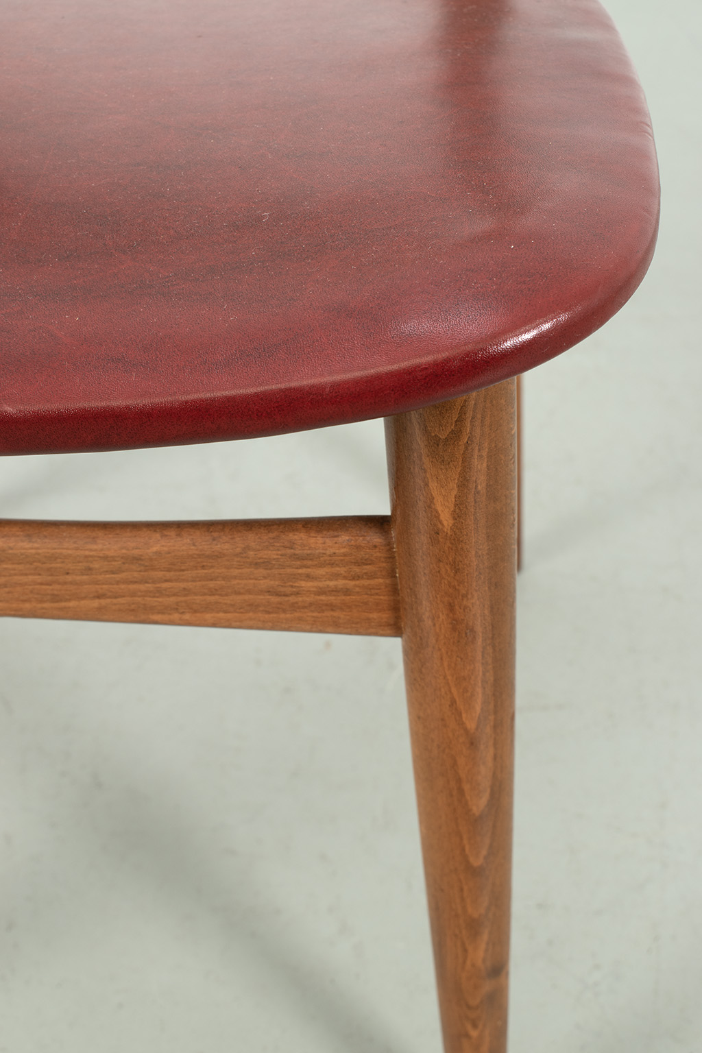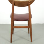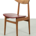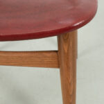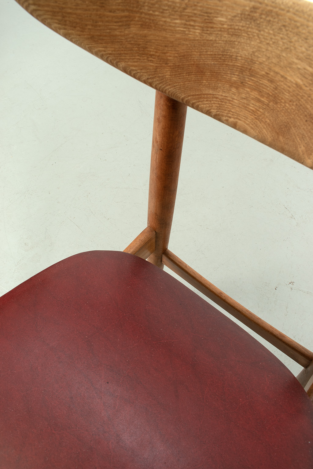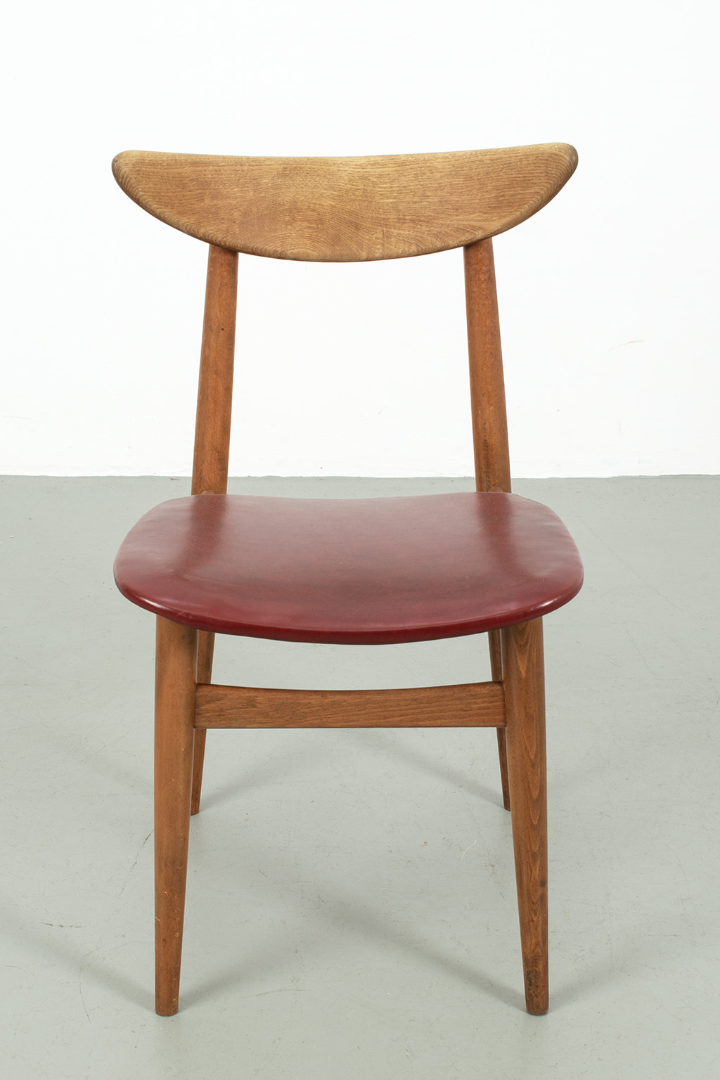 Vintage stoel met rode skai. De stoel is gemaakt van eikenhout.